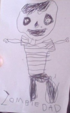Bahaha, before I scrowled down I was going to say it looks like your daughter drew him as a zombie! Looks like she has some mad skills!