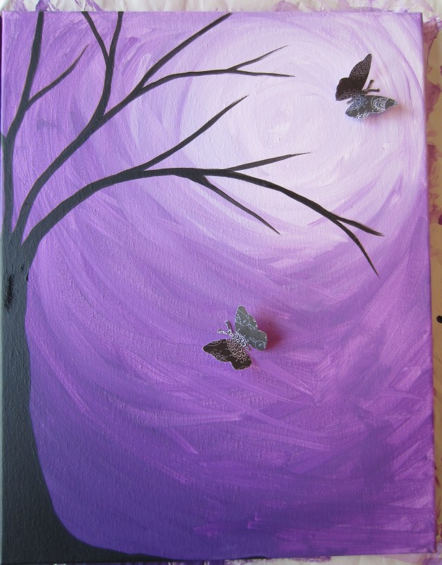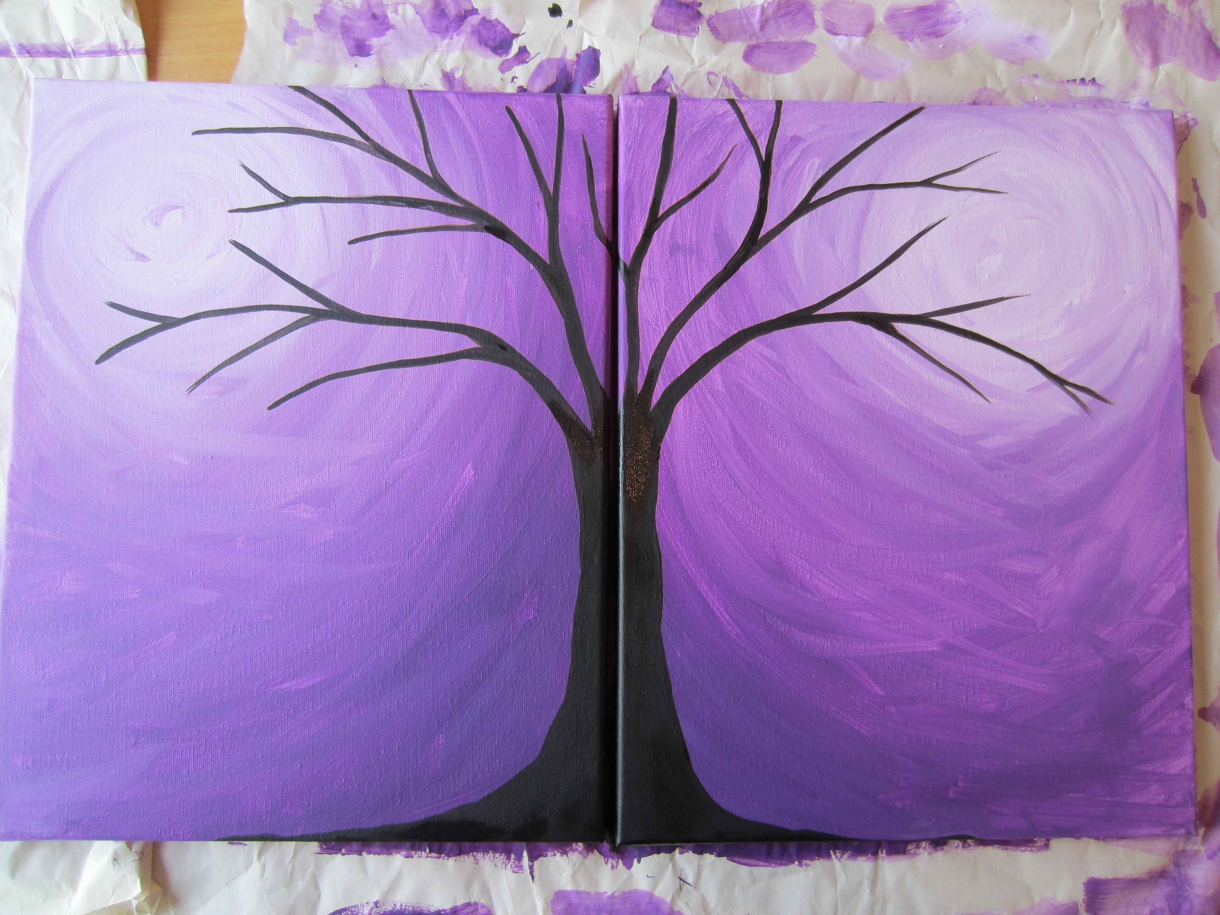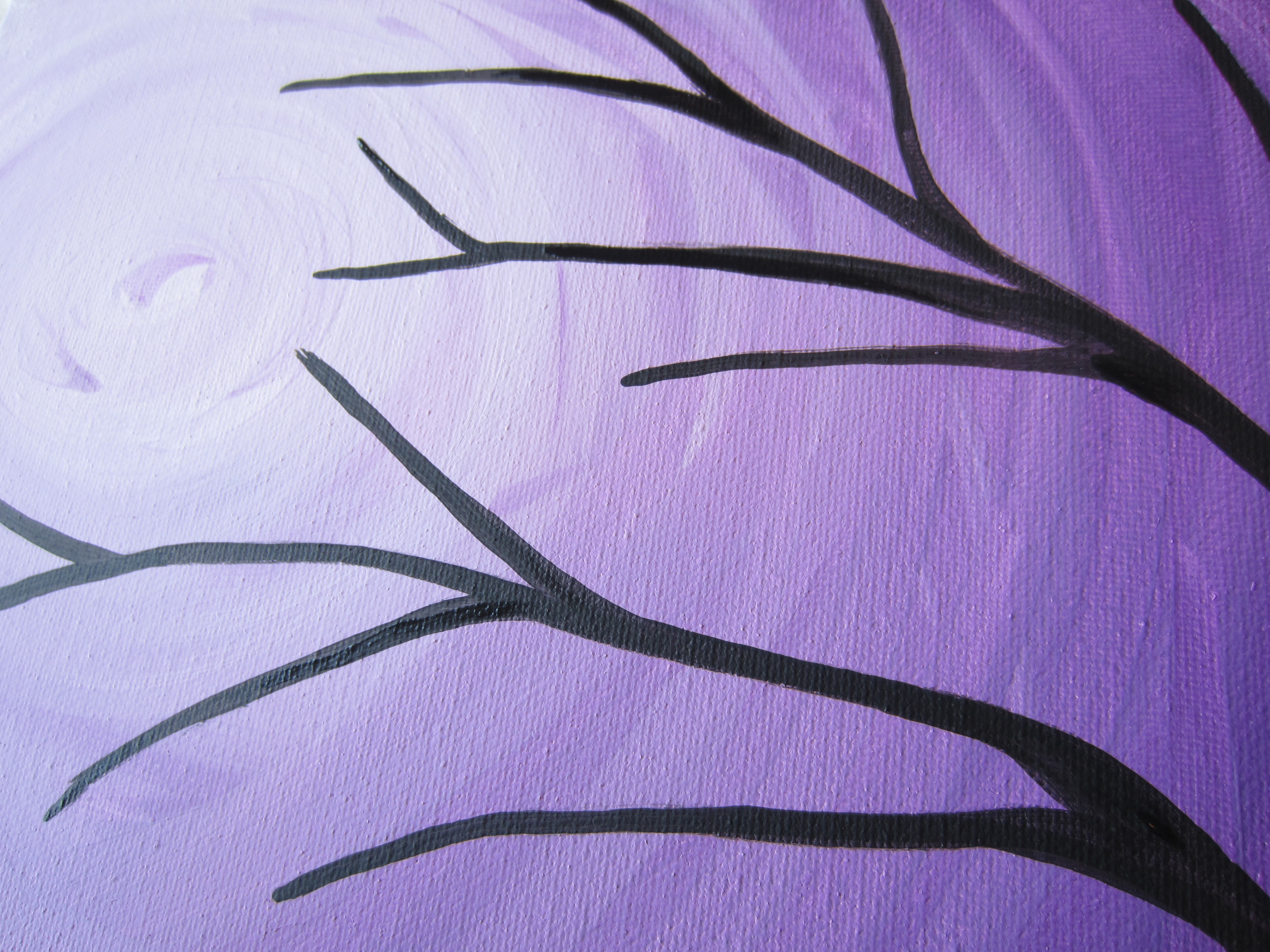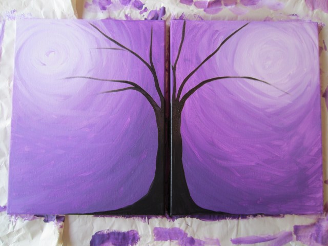 That’s better. Start with a really simple tree- we will add more branches later. Once again, don’t forget to paint the sides of the canvas.