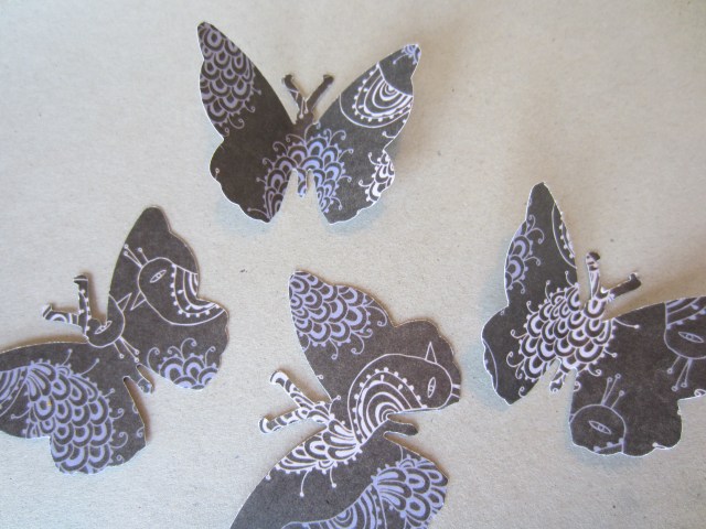 For this particular project, I punched some butterflies out of matching card stock, then folded their wings up to give them a 3-D look.