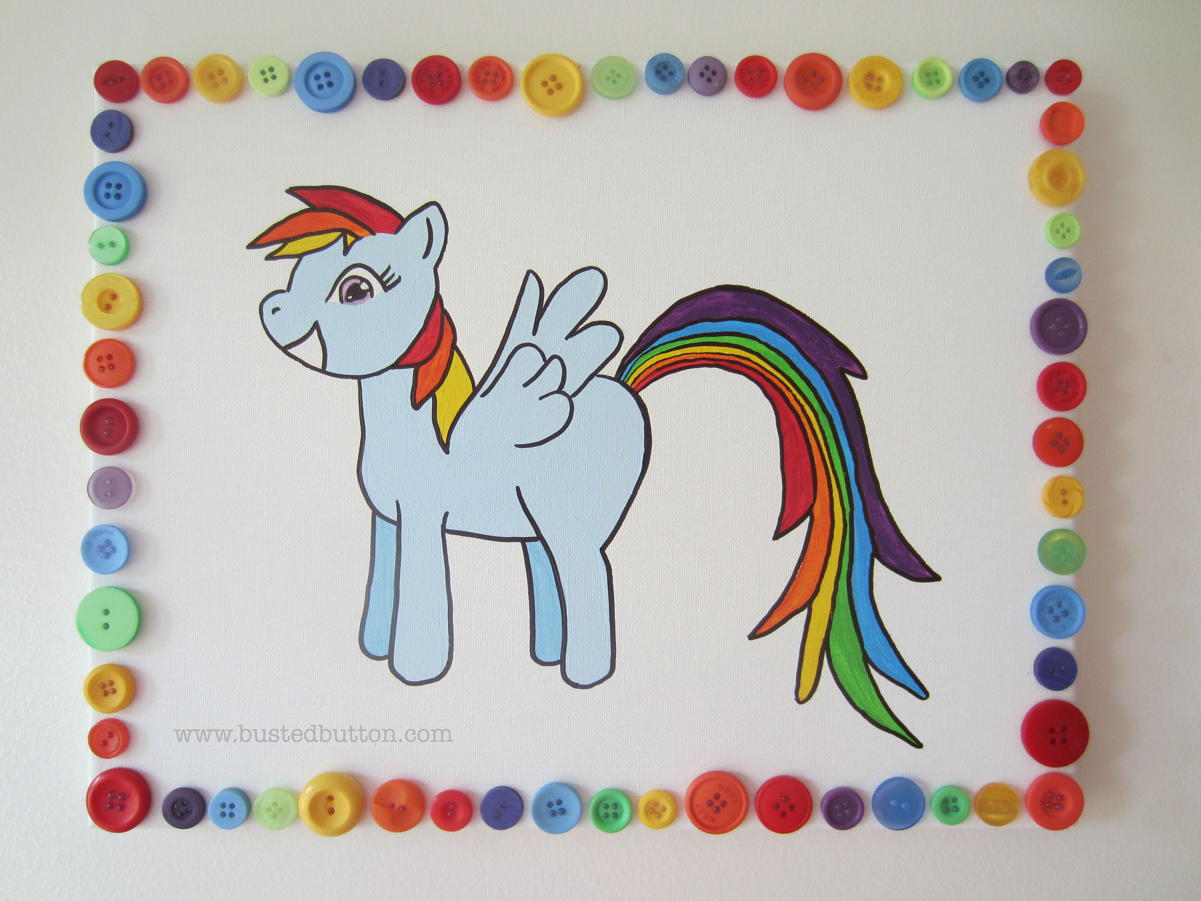 It’s Rainbow Dash for a very special gal on her birthday 😀 I’ll have to do this button frame thing more! It was so fun and simple! Heck you could add a button frame to any old thing you have kicking around!