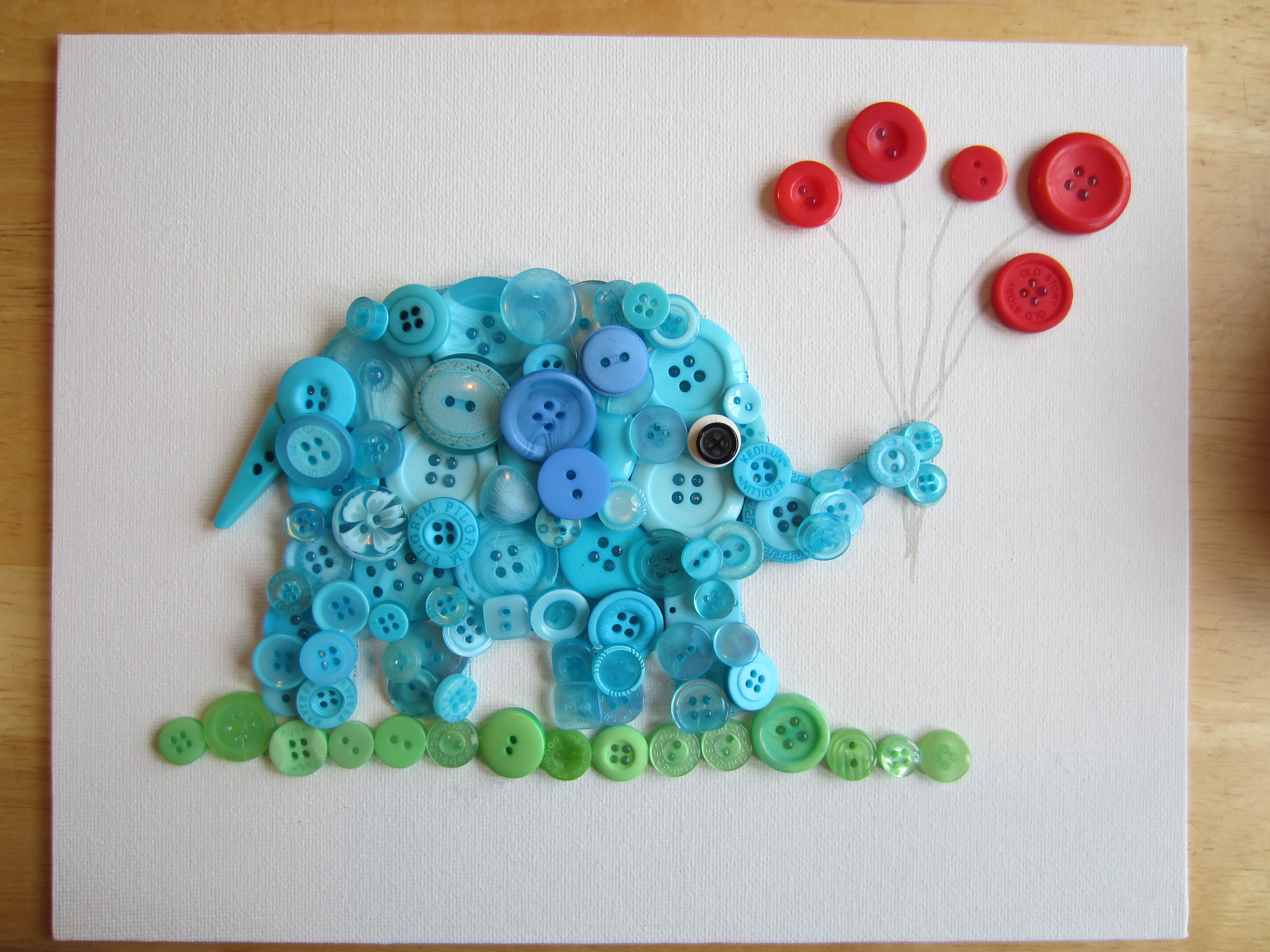 Add some button balloons, button grass, and a bit of detail with a pen, and stand in awe of your precious pachyderm!