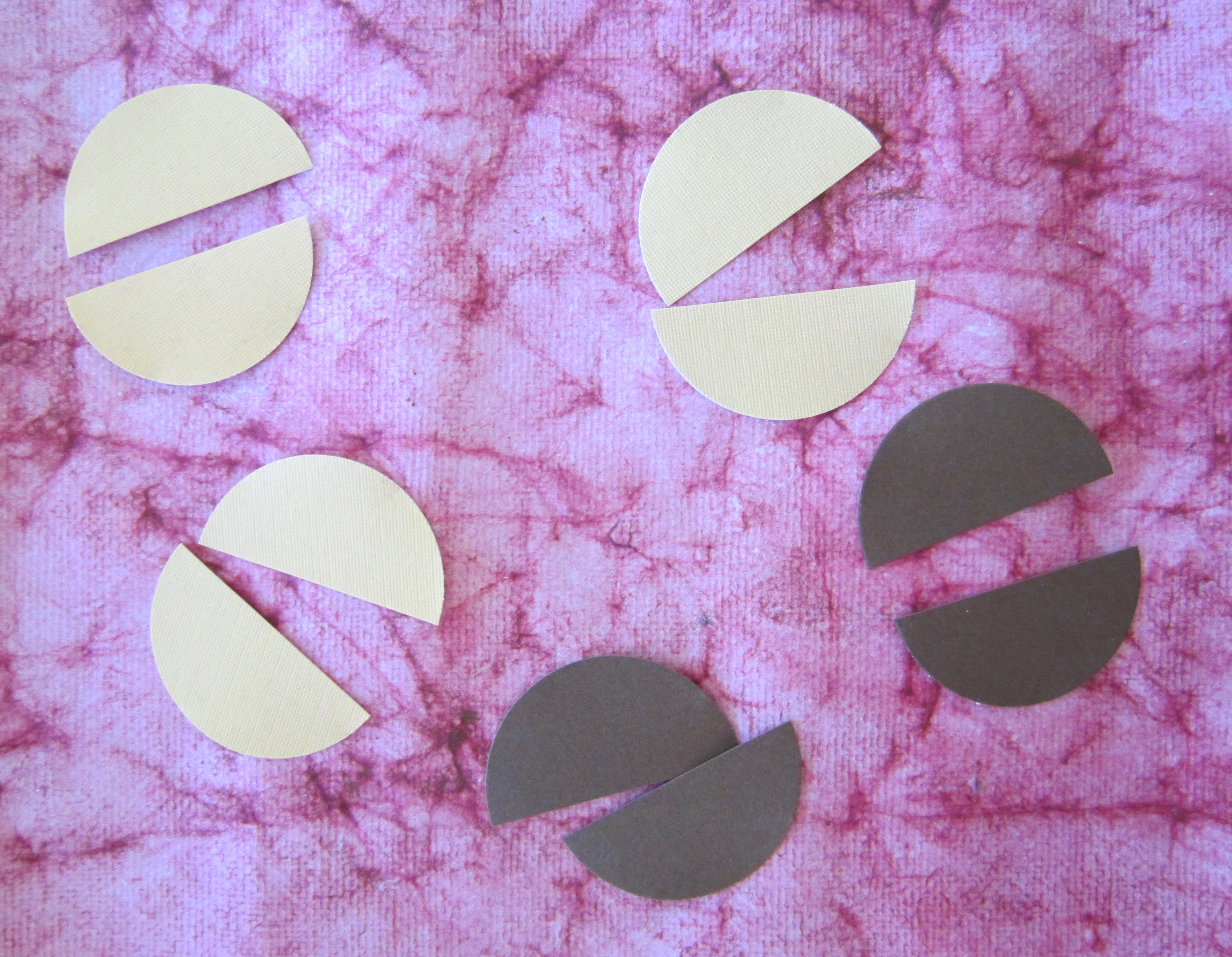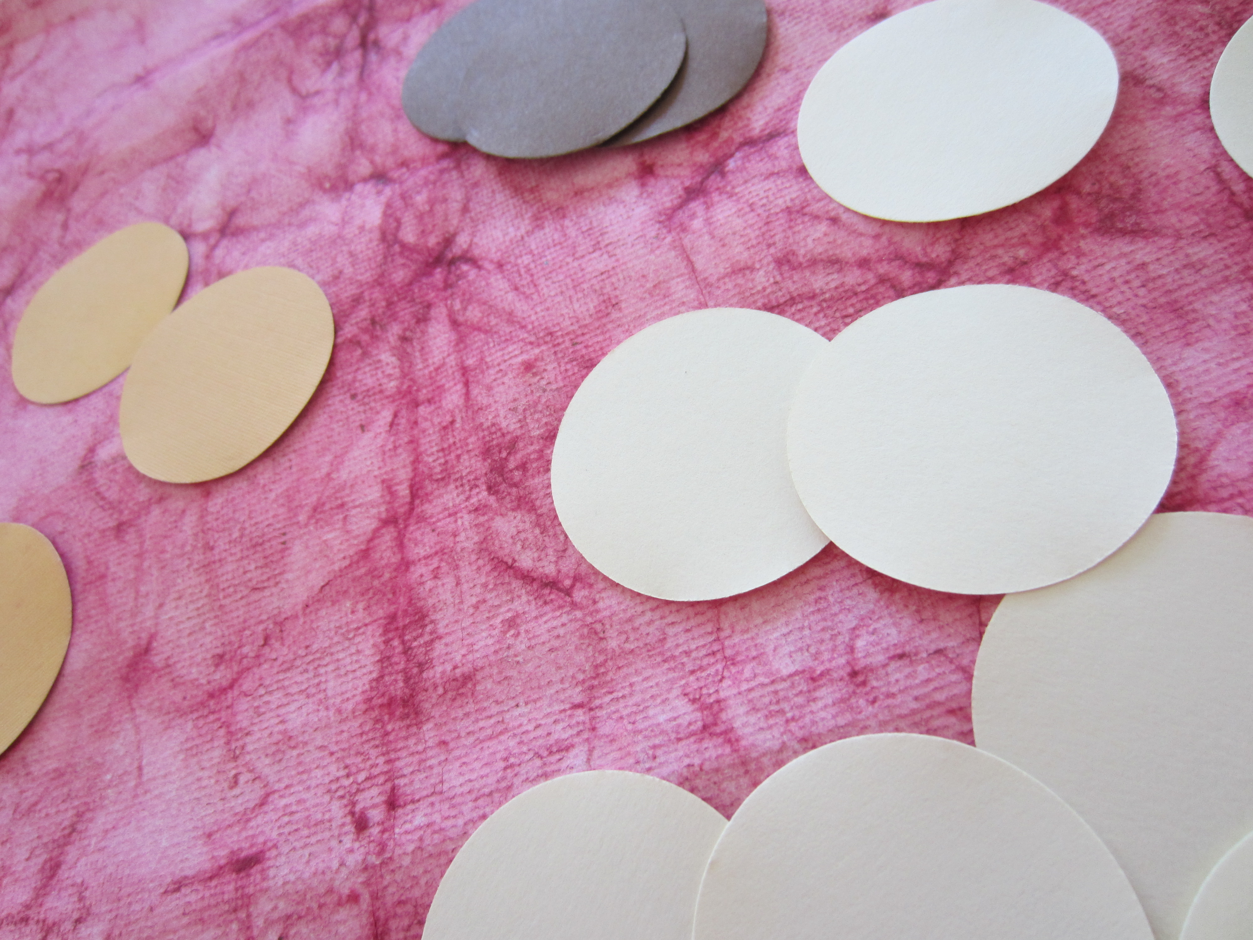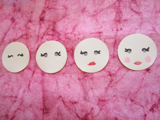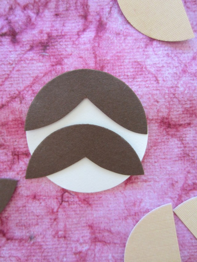 For the faces, I just punched 1 inch circles from off-white paper. And for the hair, I punched circles out of brown and ‘blond’ paper.
