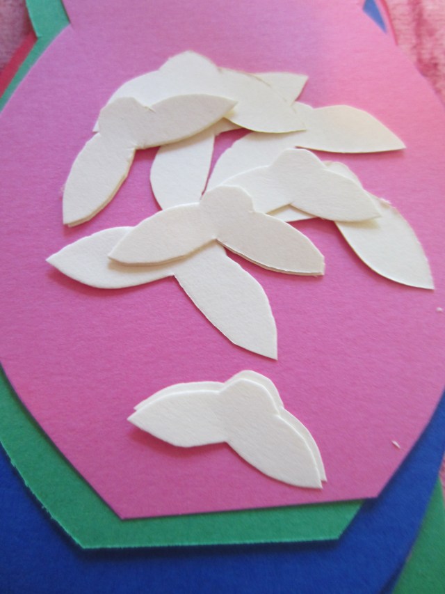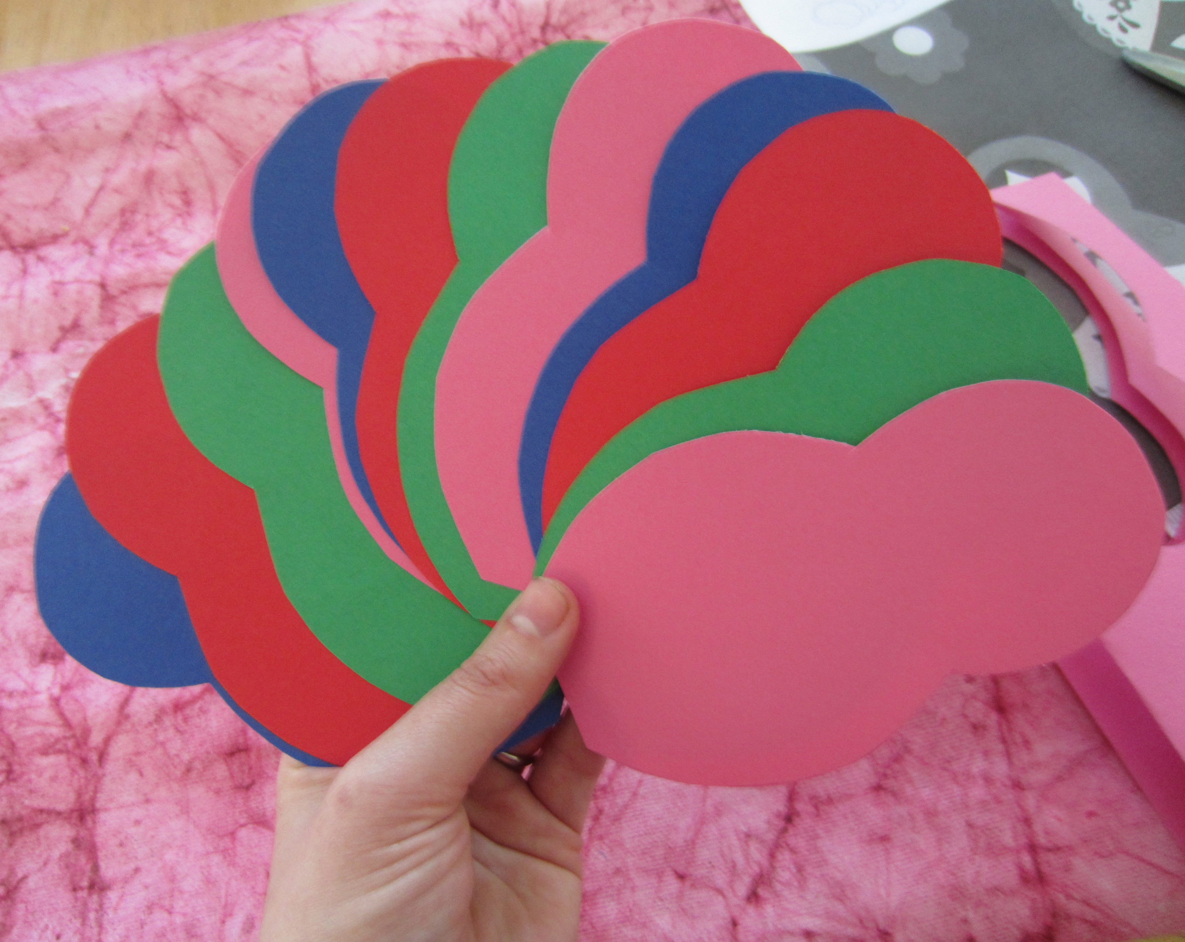 Next I traced the pattern onto 3 layers of card stock. I repeated this with 3 more colors: