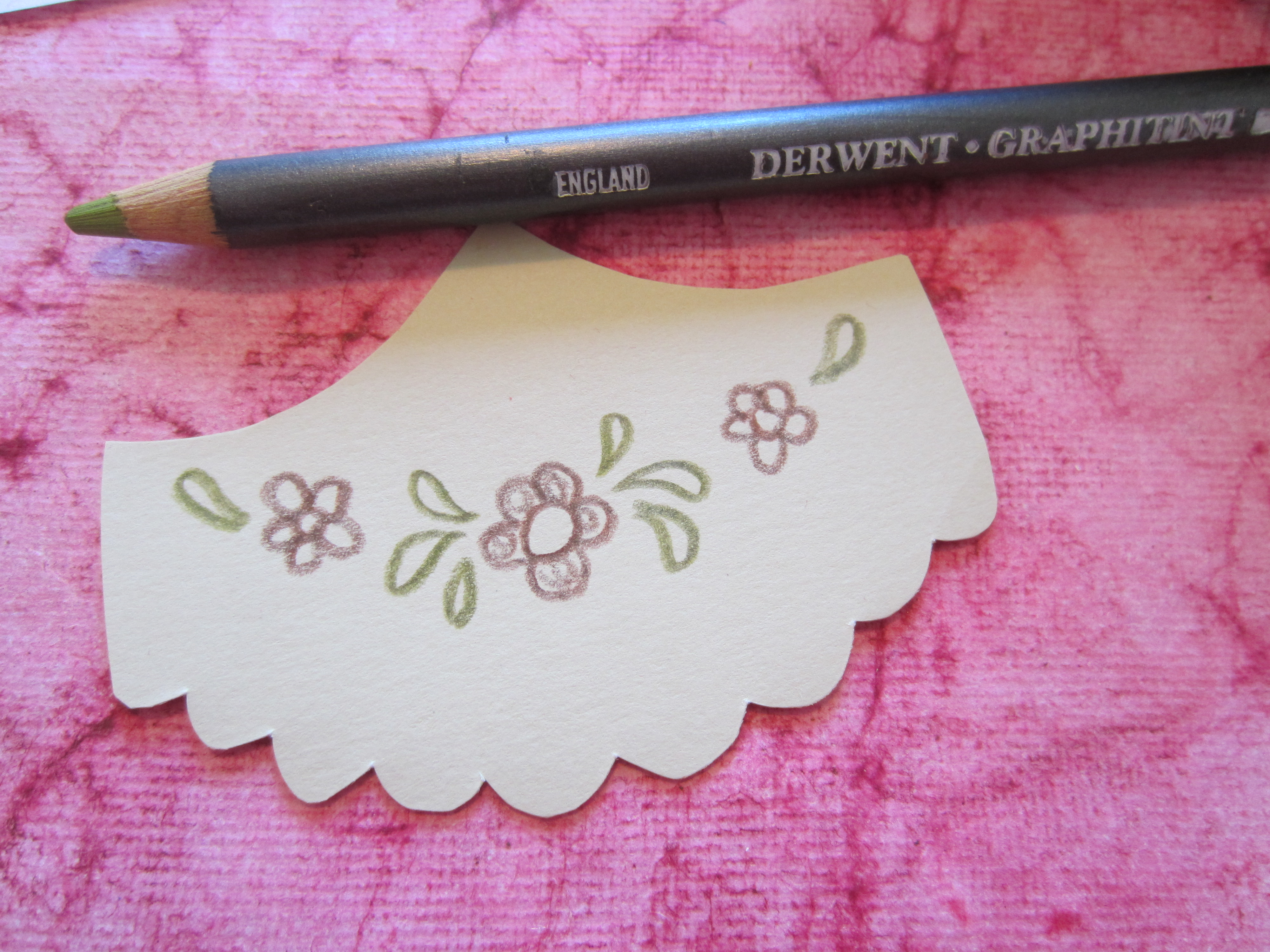 I wanted to add some detail, so I used watercolor pencils to draw a cute little flowery pattern.