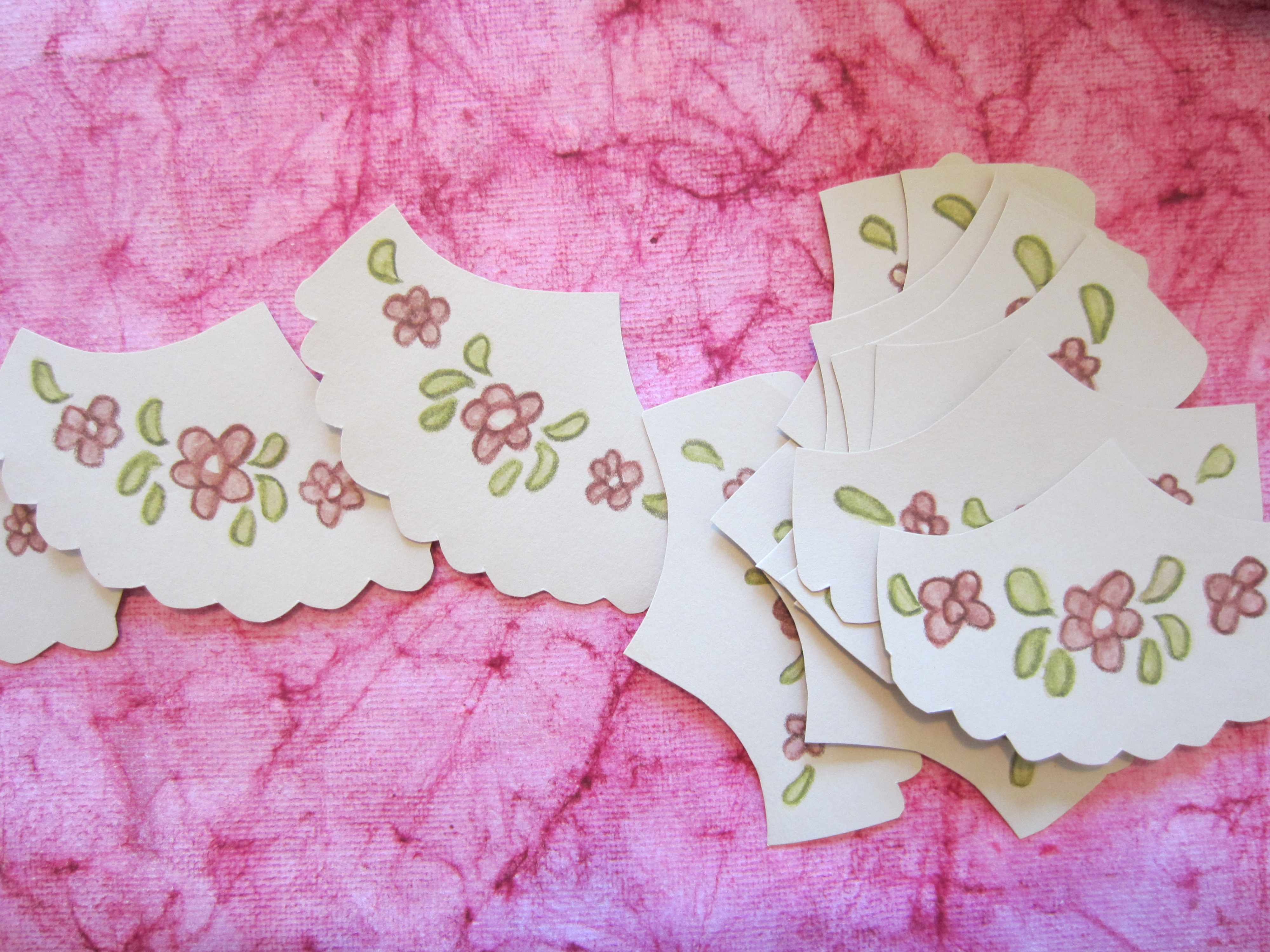 I traced 12 of them onto some cream-colored paper, and added some ruffles before I cut them out.