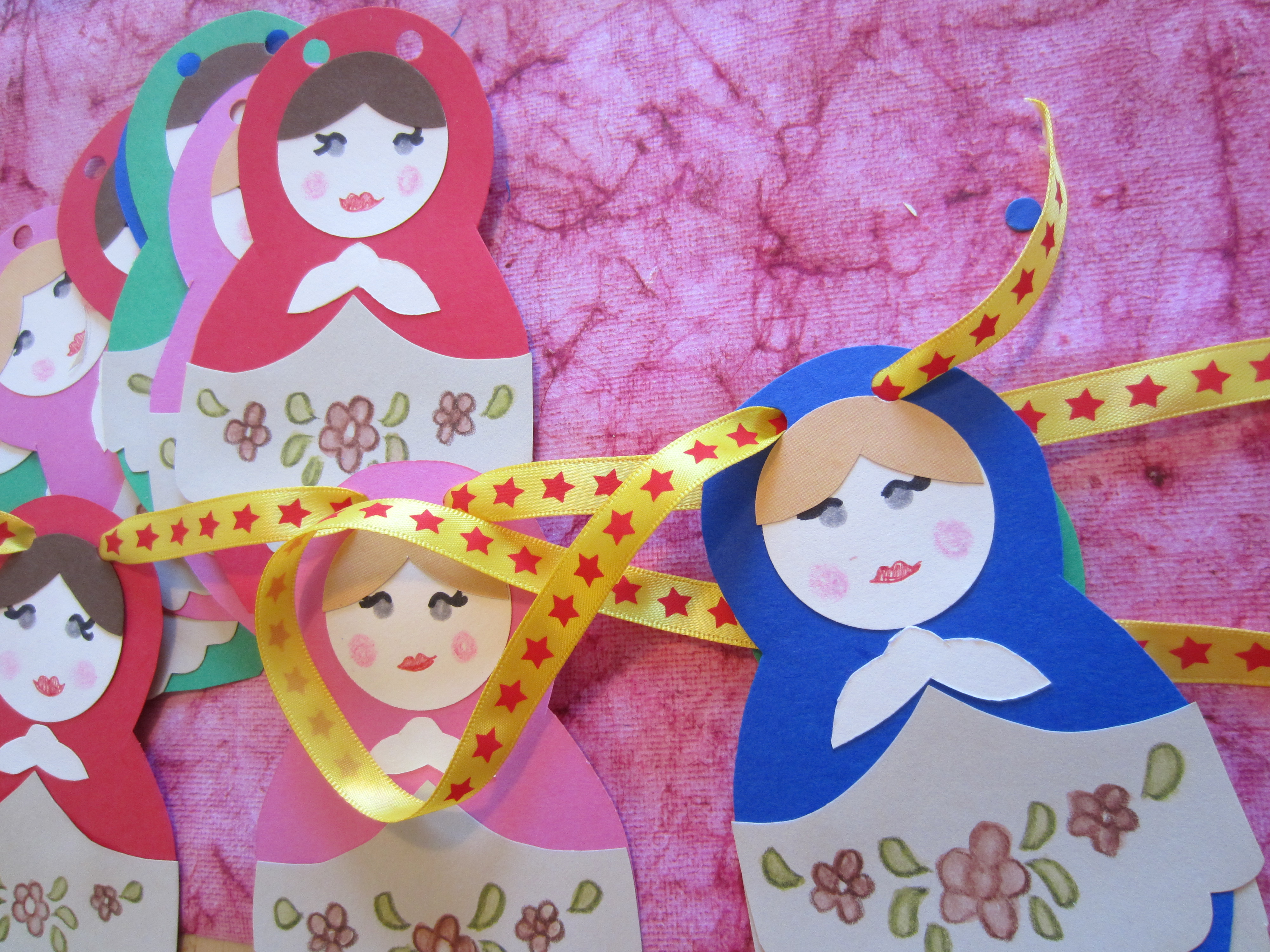 What a cute little babushka. I wanted to make a nice garland, and that is what I did- so I’ll let ya know how I made it!