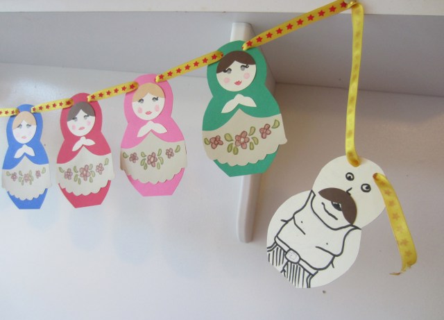 So I haven’t been around for a while- I was with my sister in the hospital for the weekend because she just had her first baby! Welcome to the world, Cherry Valentine! Speaking of babies, my friend is having a baby girl soon, so I wanted to make her a little decoration to match her Russian Doll theme.