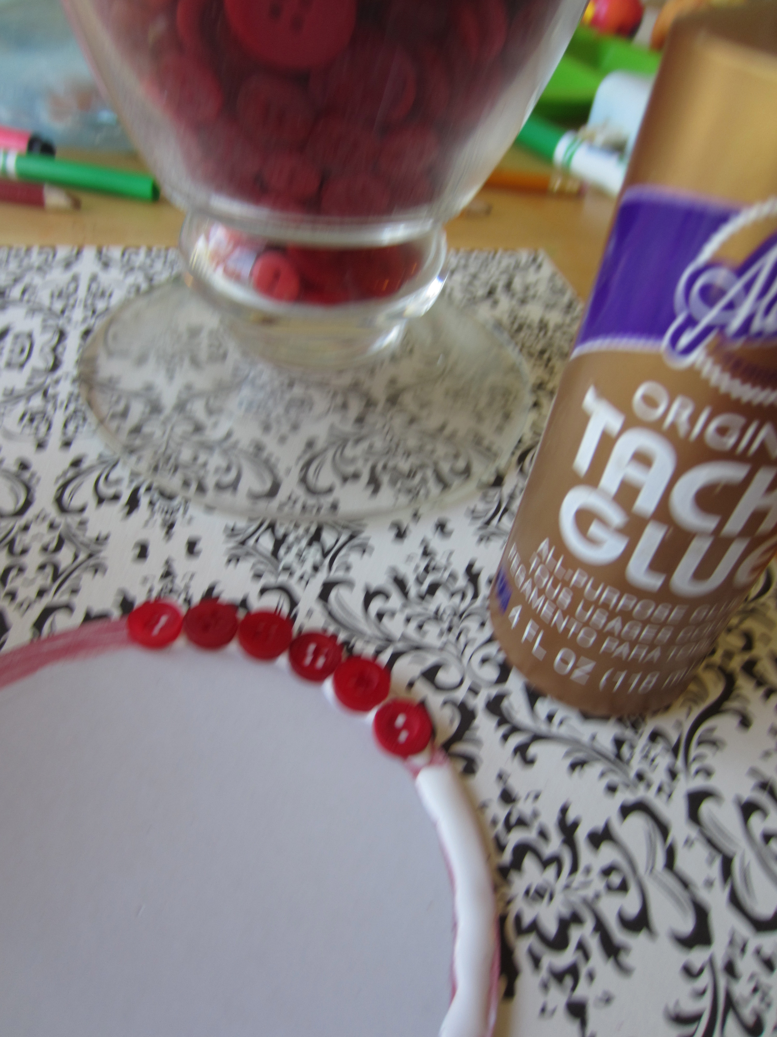 Then I simply used some white glue (the kind that dries clear) to glue my buttons on, then waited for the glue to dry.