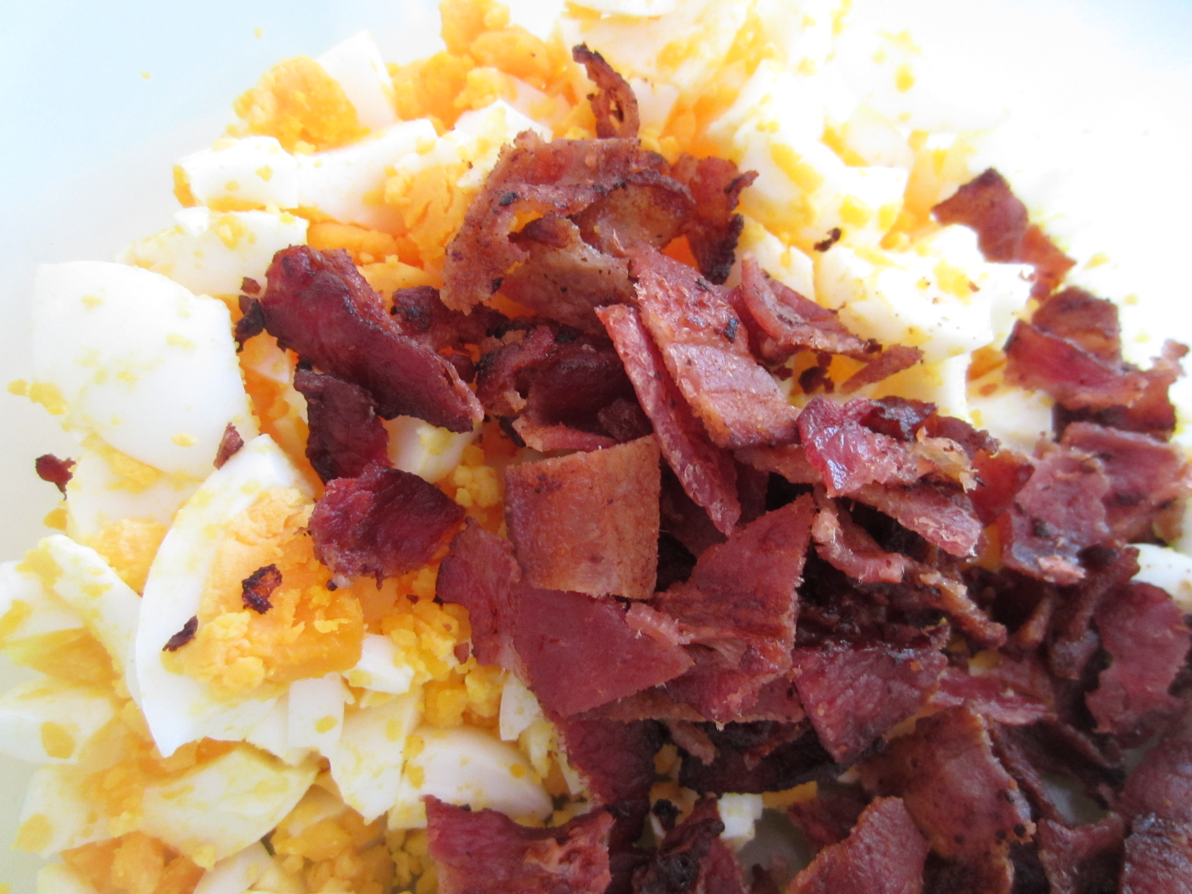 - 4 hard-boiled eggs, chopped (I used good-quality eggs-none of those cheap, pale yellow Walmart eggs here! I save those ones for baking lol.)