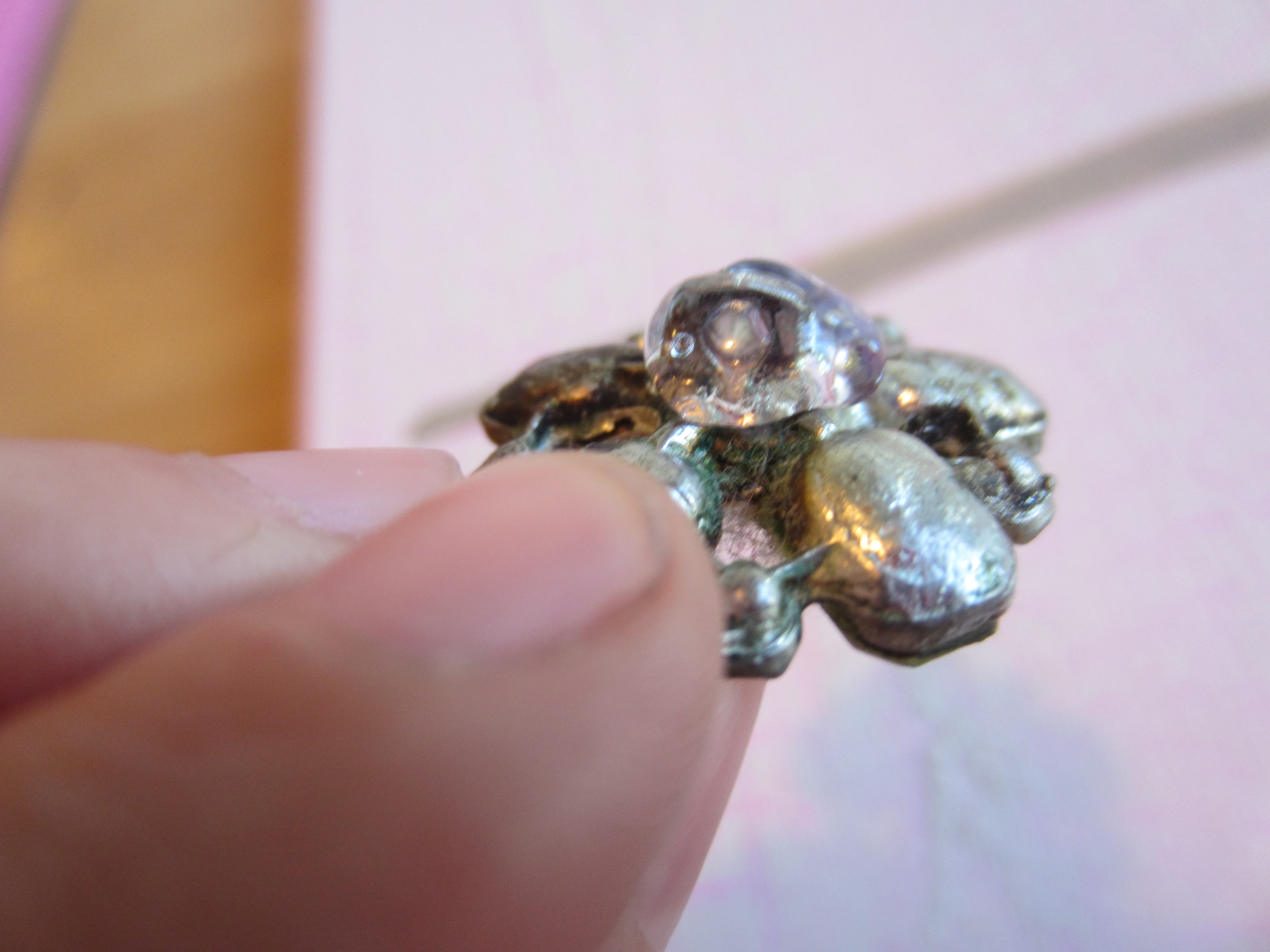 Slather that nub in a small mound of hot glue. This is risky business. Be prepared to endure some war wounds, and then display them proud. I wont tell you the strangest place I’ve gotten a hot glue scar. my inner thigh.