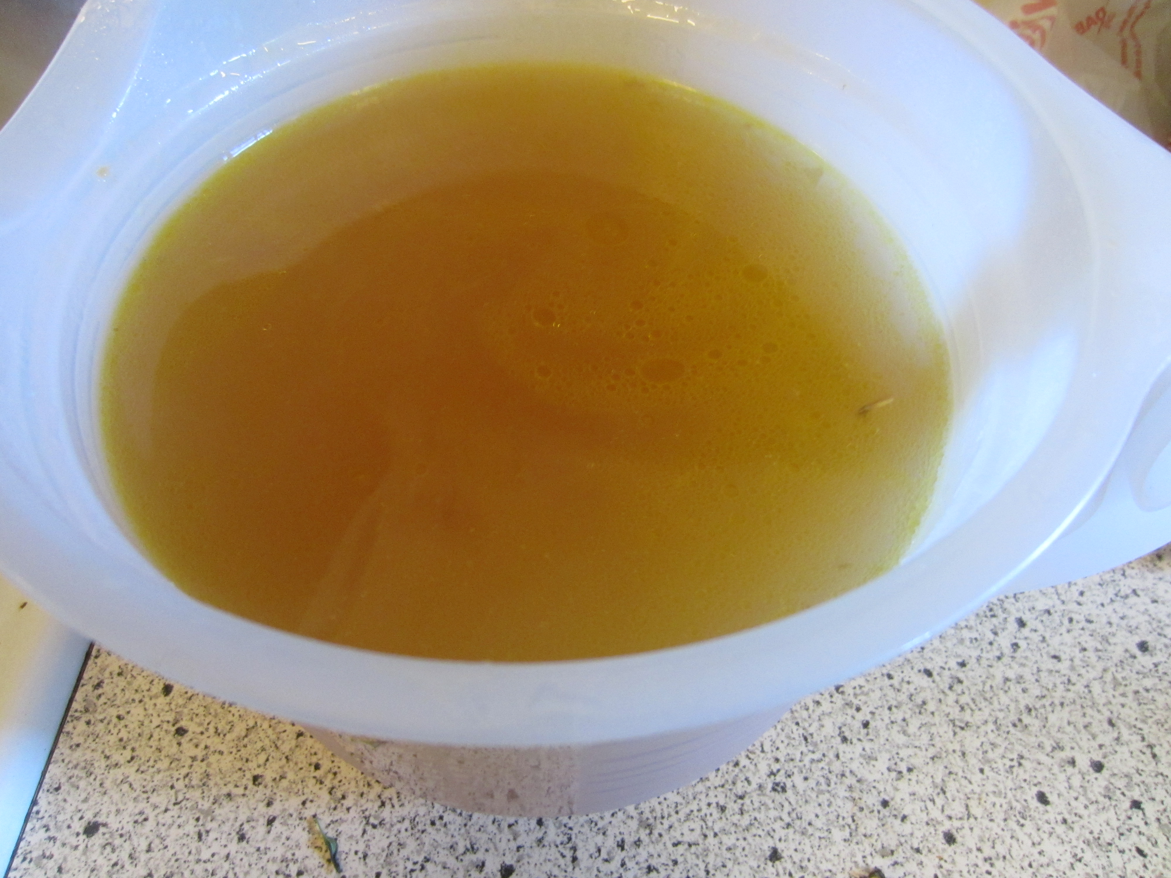 When your stock has simmered for enough time, strain it into a big bowl, and you have gold!