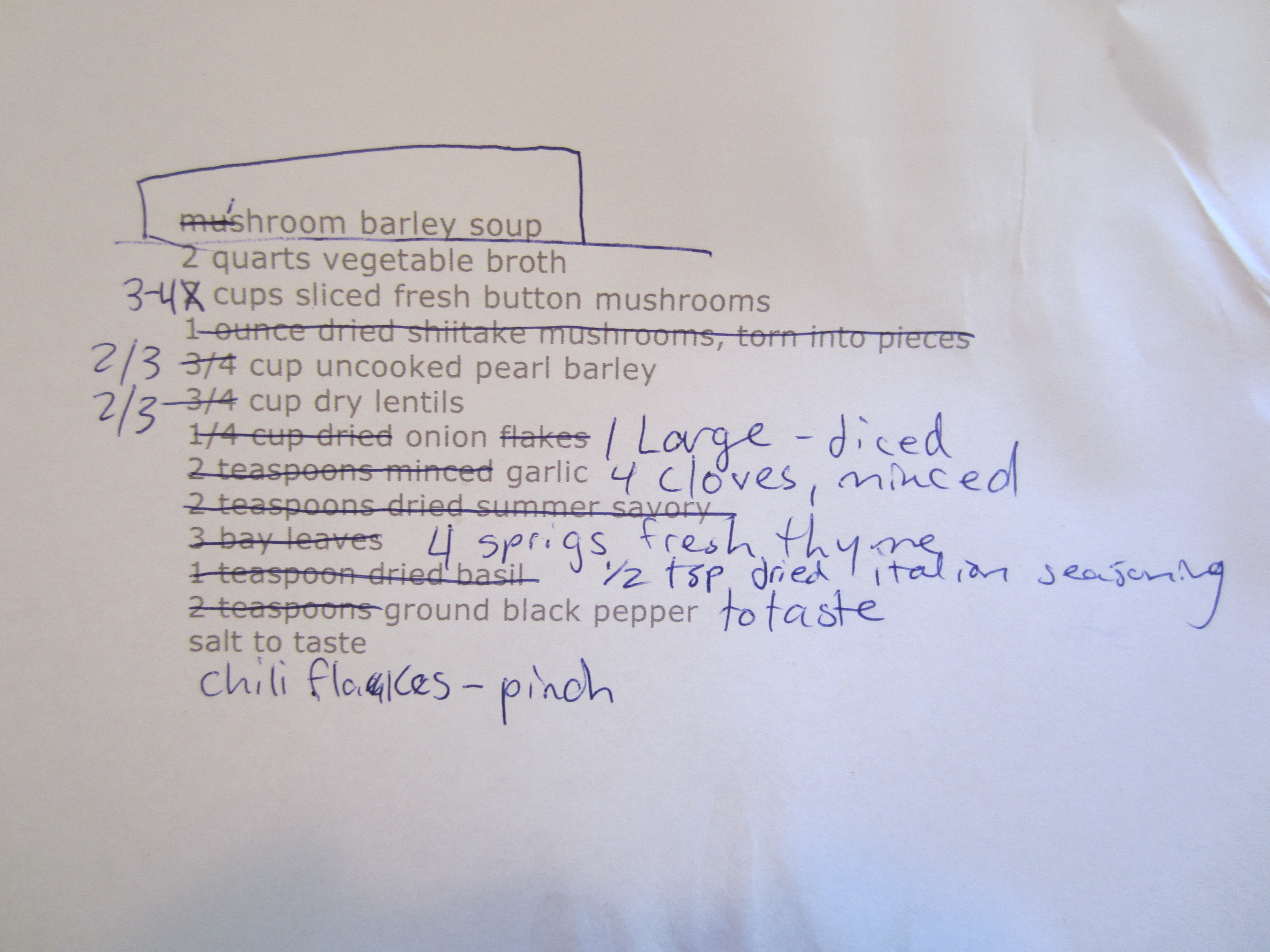 I was inspired to make a non- cream-based mushroom soup last year and found a recipe online. I changed it enough, that I’m pretty sure I can just take all the credit now. Observe: