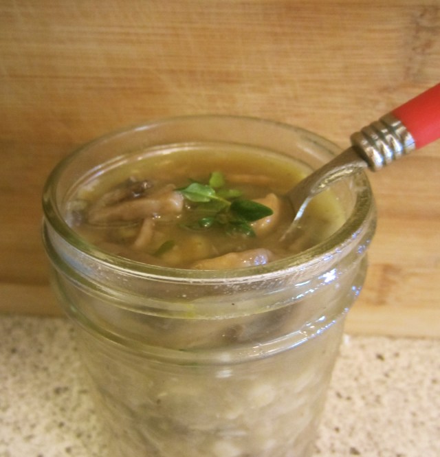 Now shovel it in your face. Â You can even put some of the soup in a small mason jar: