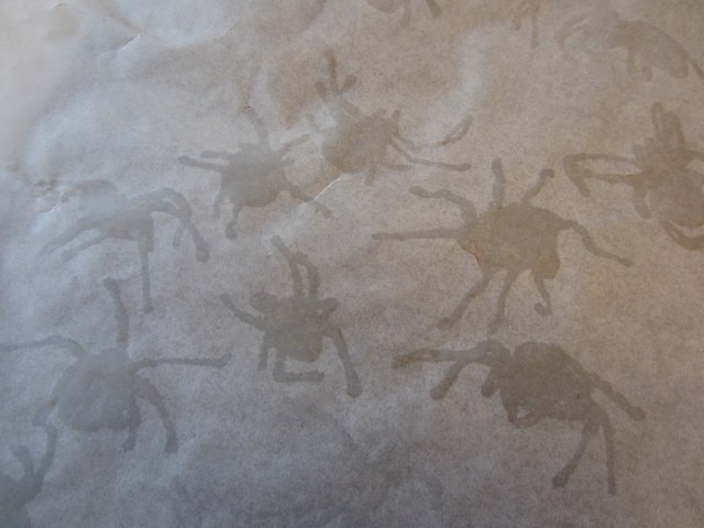 Step 6: Carefully peel the hardened spiders from the parchment paper…