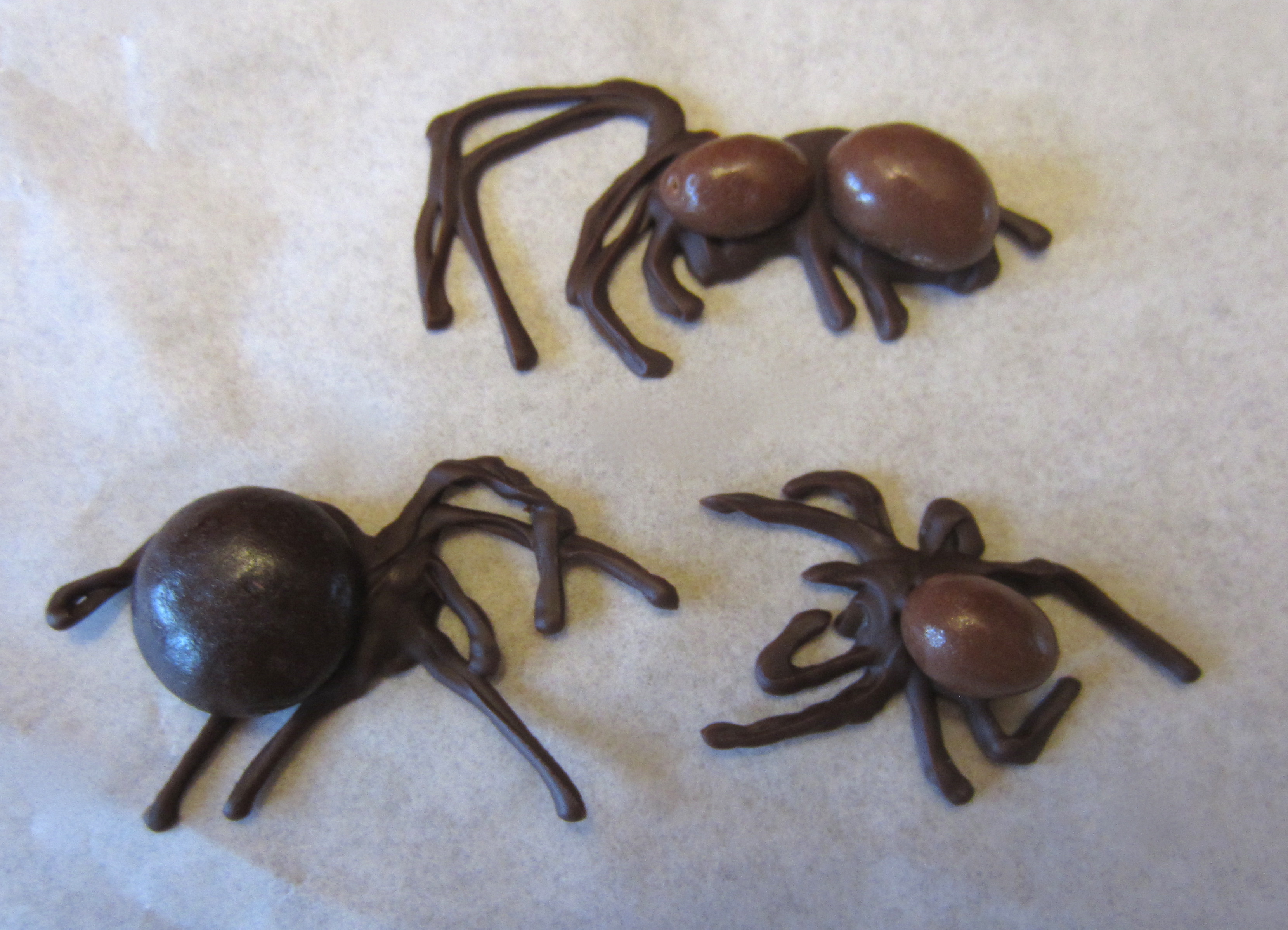 This is where your arsenal of different sized and shaped chocolates comes in handy. No two spiders are the same. Some have those disgusting big butts :’O