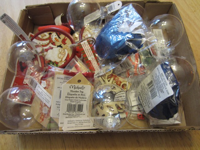 This is a box of decorations that I bought from Michaels last year after Christmas. I’ve never actually done Boxing Day shopping or Christmas discount shopping before! But last year I was so sick between Christmas and New Year’s that I wasn’t able to visit family right away like I normally do. So I had some spare time on my hands and went shopping! These decorations cost between 10 and 60 cents. I packed them away and have been waiting patiently to see them again ever since!