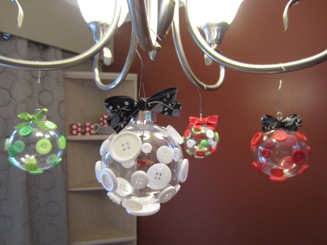 I decided to make some really quick buttonized decorations, using these plastic balls: