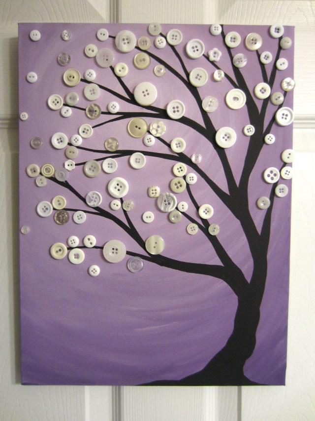 For this nifty blowing button tree, I used a ton of vintage white buttons to decorate the branches!
