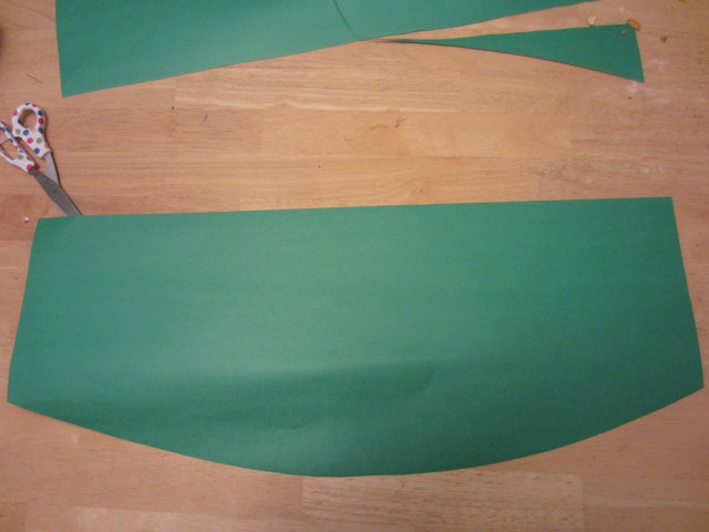 Step 2: Cut your other piece of poster board into two pieces horizontally. Cut out a slight curve on the bottom of each of them. The curved end will wind up being on the bottom of your tree.