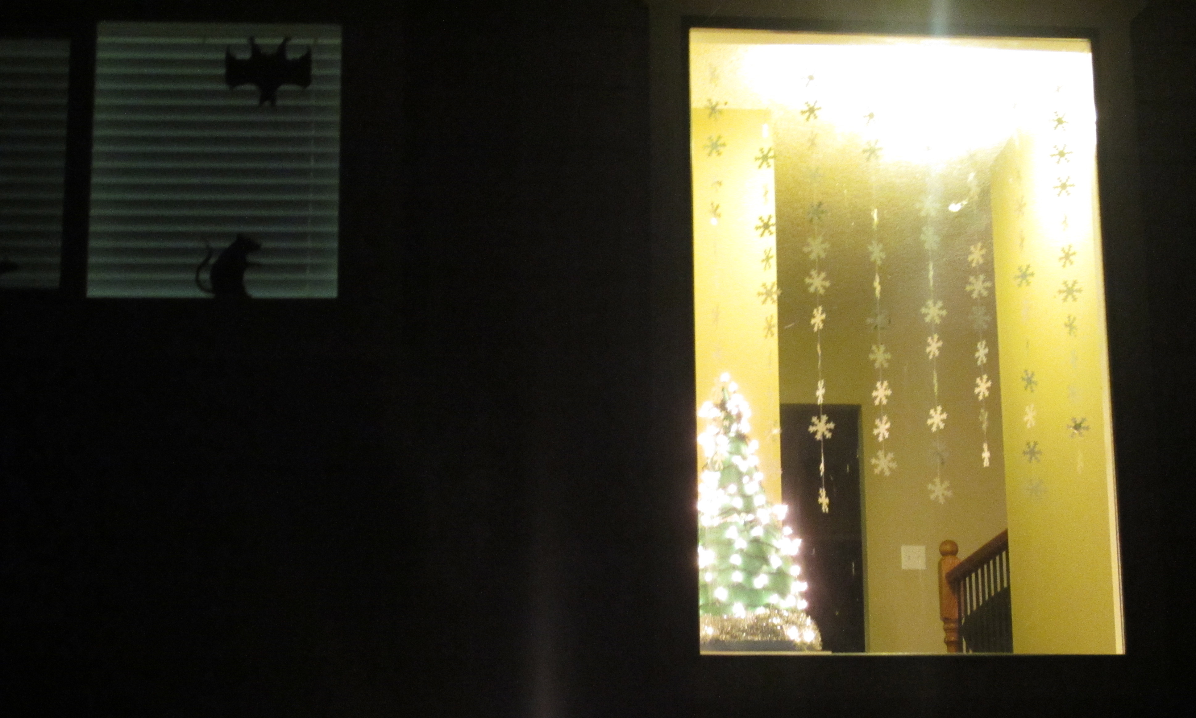 So festive and sparkly! Ignore the bat and rat in my son’s window… I guess I forgot to take down his halloween decorations- OOPS!