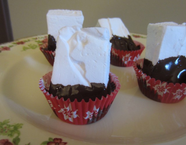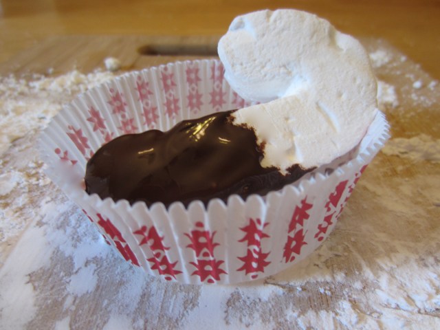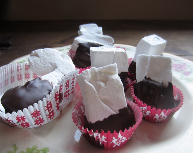 Okay- now for the bonus!!! Homemade marshmallows- dipped in chocolate- perfect for your new-found cup of hot chocolate!
