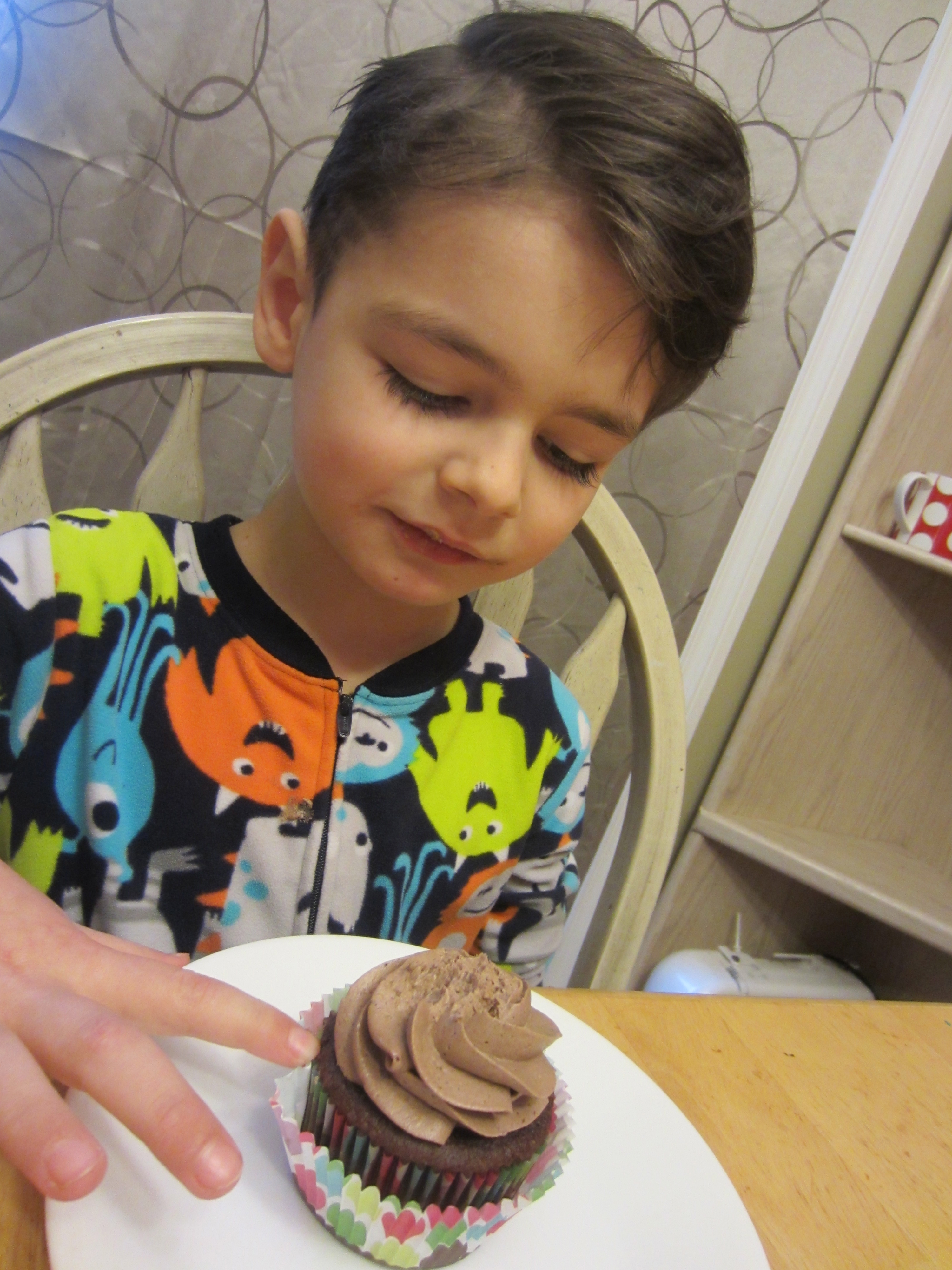 I decided to give him a cupcake for breakfast… Let’s see what he thought of that idea…
