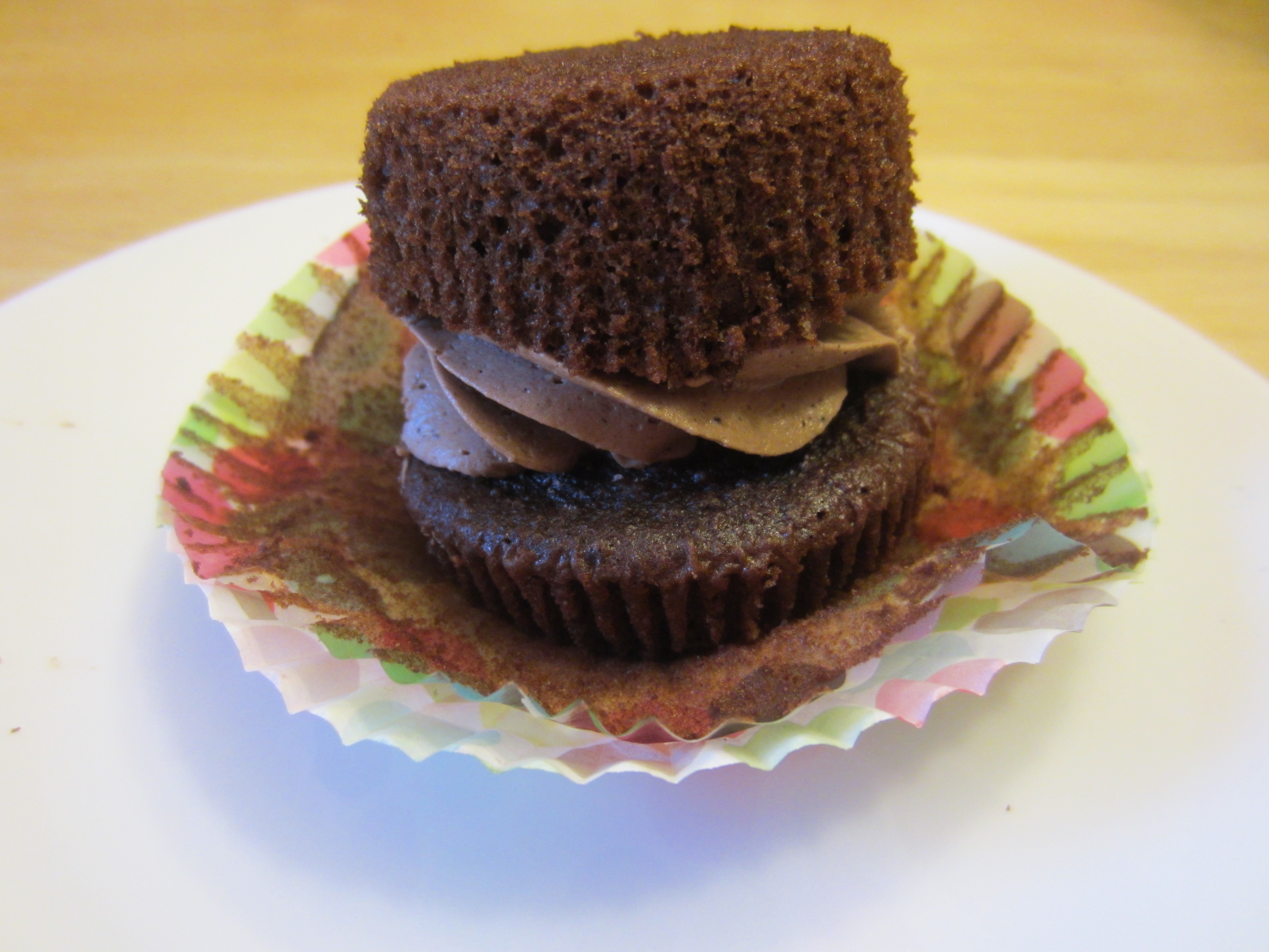 Now THIS is how to eat a cupcake! just rip the cupcake in half, and sandwich it together like that! It is so much easier to eat- and pack up for that matter! You get a more proportioned icing-to-cake ratio in every bite, and it is wayyy less messy!