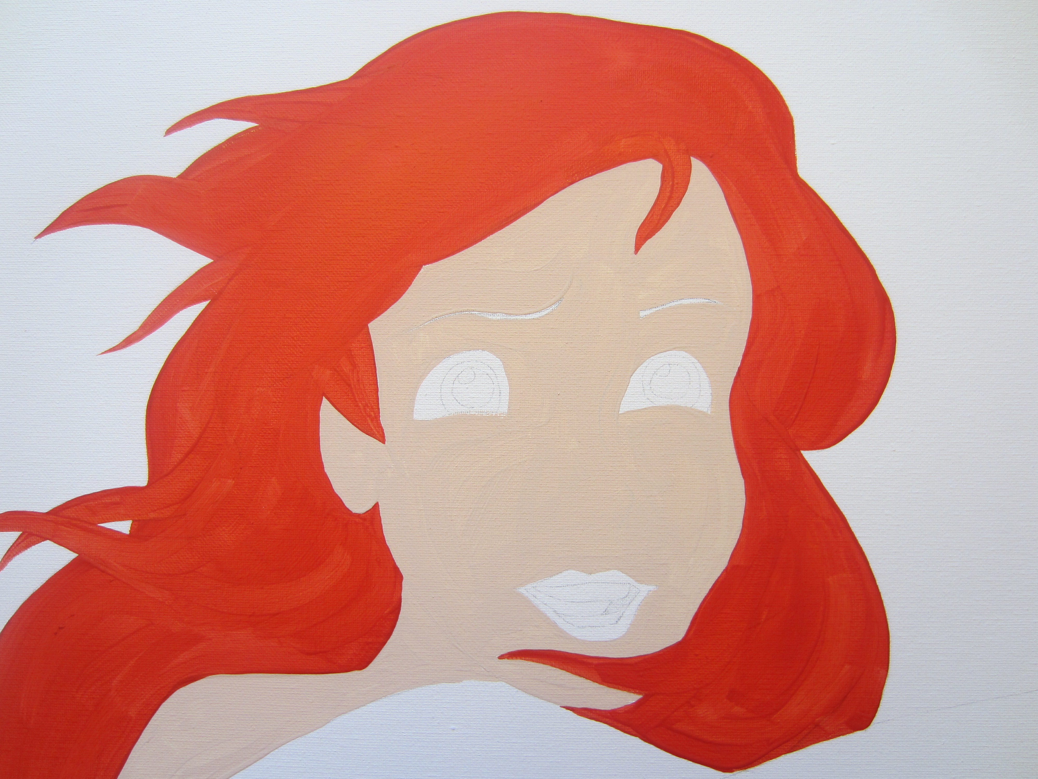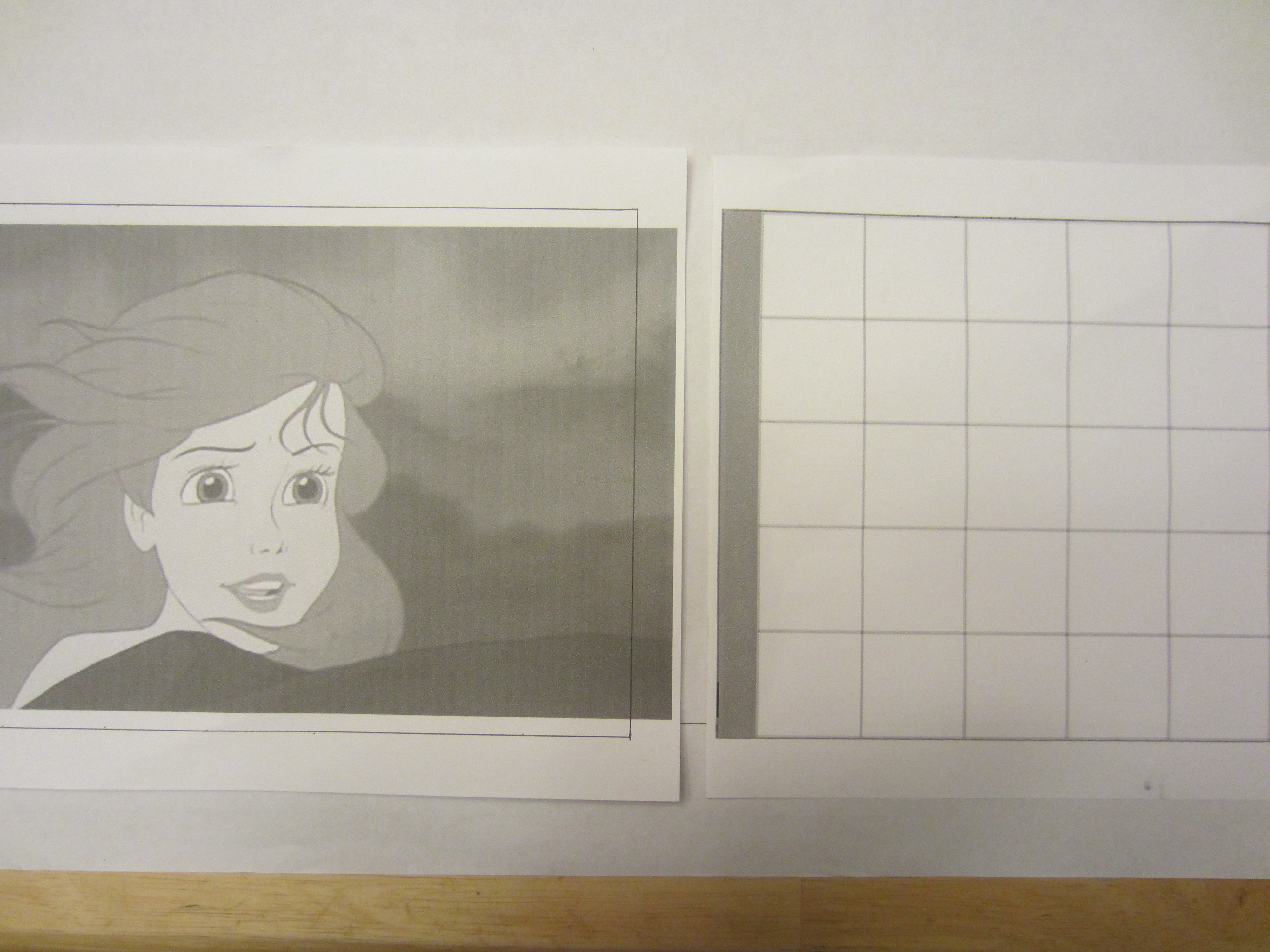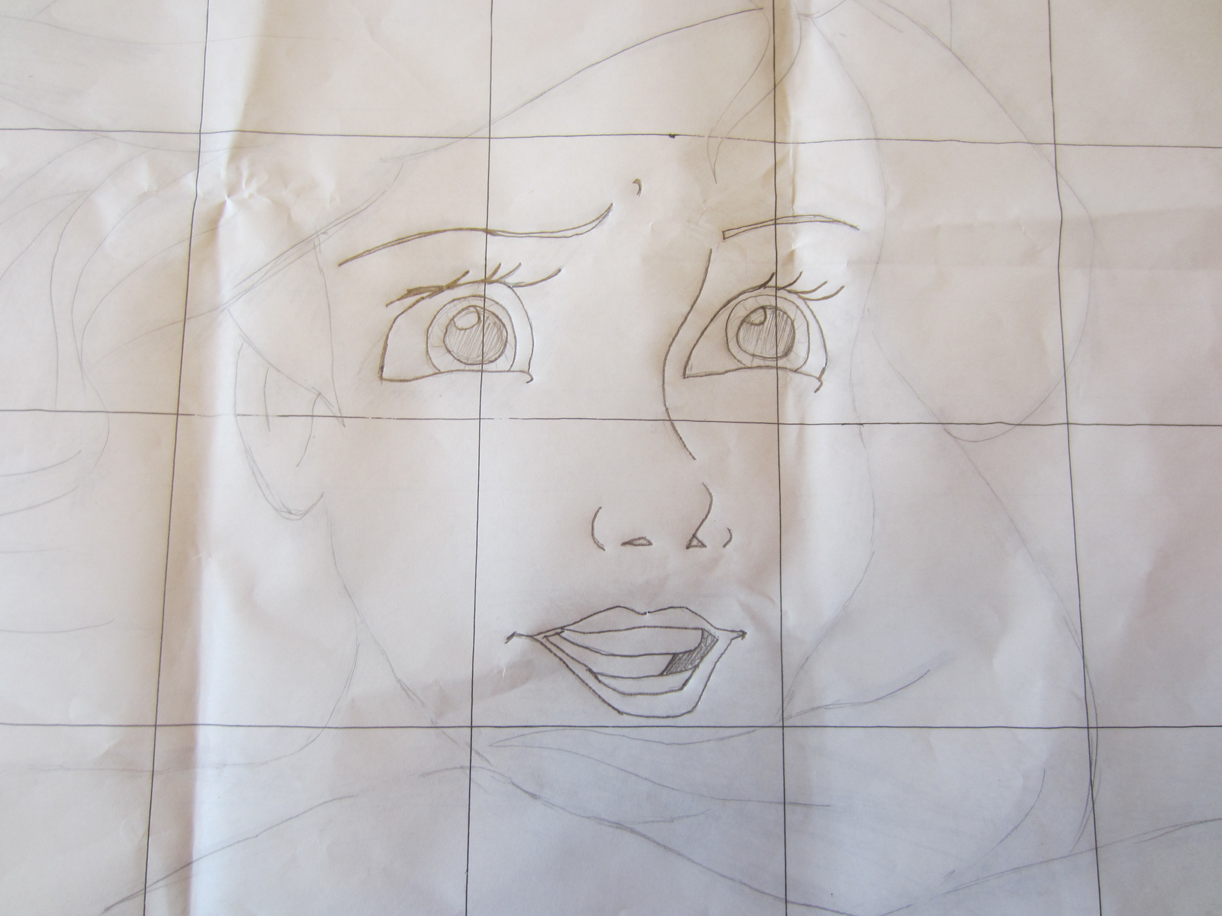 IMG_0734Next, I slowly began to draw the details of Miss Mermaid onto my large graph, making sure to keep things looking similar. I started with the face details, because those are the most important thing to get right when you are wanting your end product to resemble a certain character, rather than a cheap Dollar Store knock-off. You know what I mean- dolls like those ‘Disneee Princess Girlies’ you can buy for a dollar that are even LESS anatomically correct than their $20 role models.