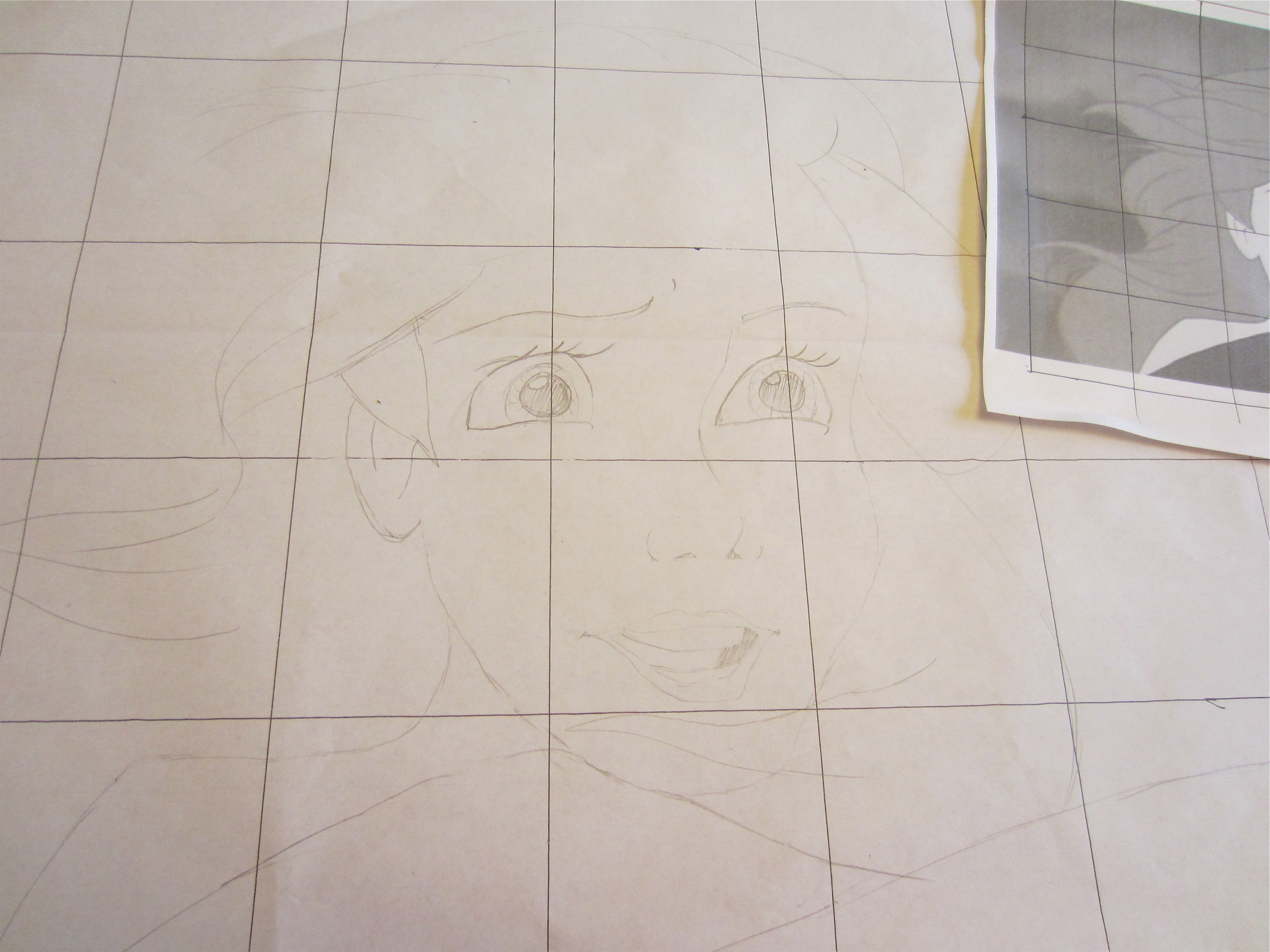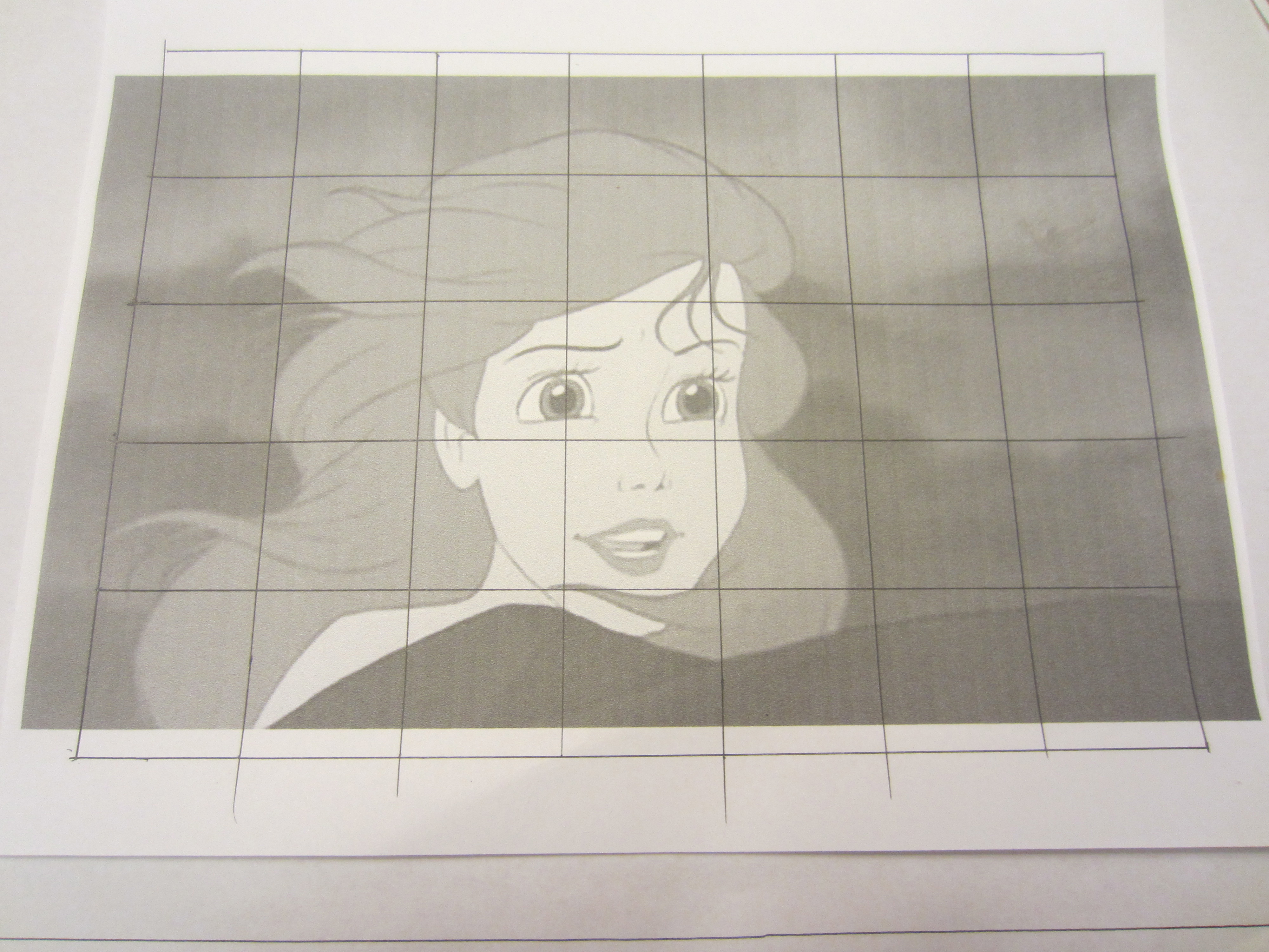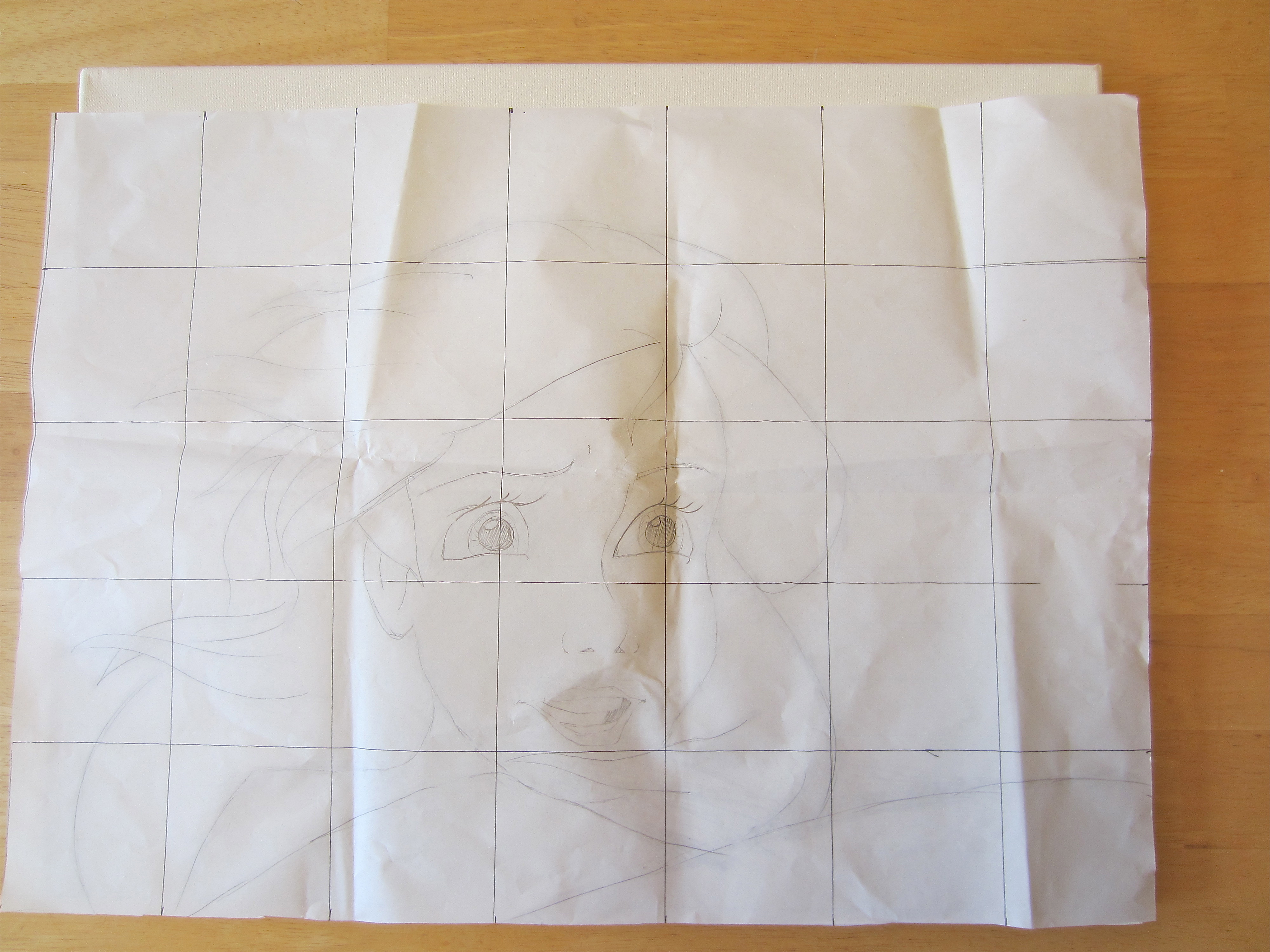 I drew the graph over top of the image like so, and then I drew a larger graph (with the same amount of squares) onto a large piece of paper, which was the same size as the canvas I would be using. For a more detailed tutorial on how to use this graph method click here. This might look complicated but with a bit of patience anyone can do it!