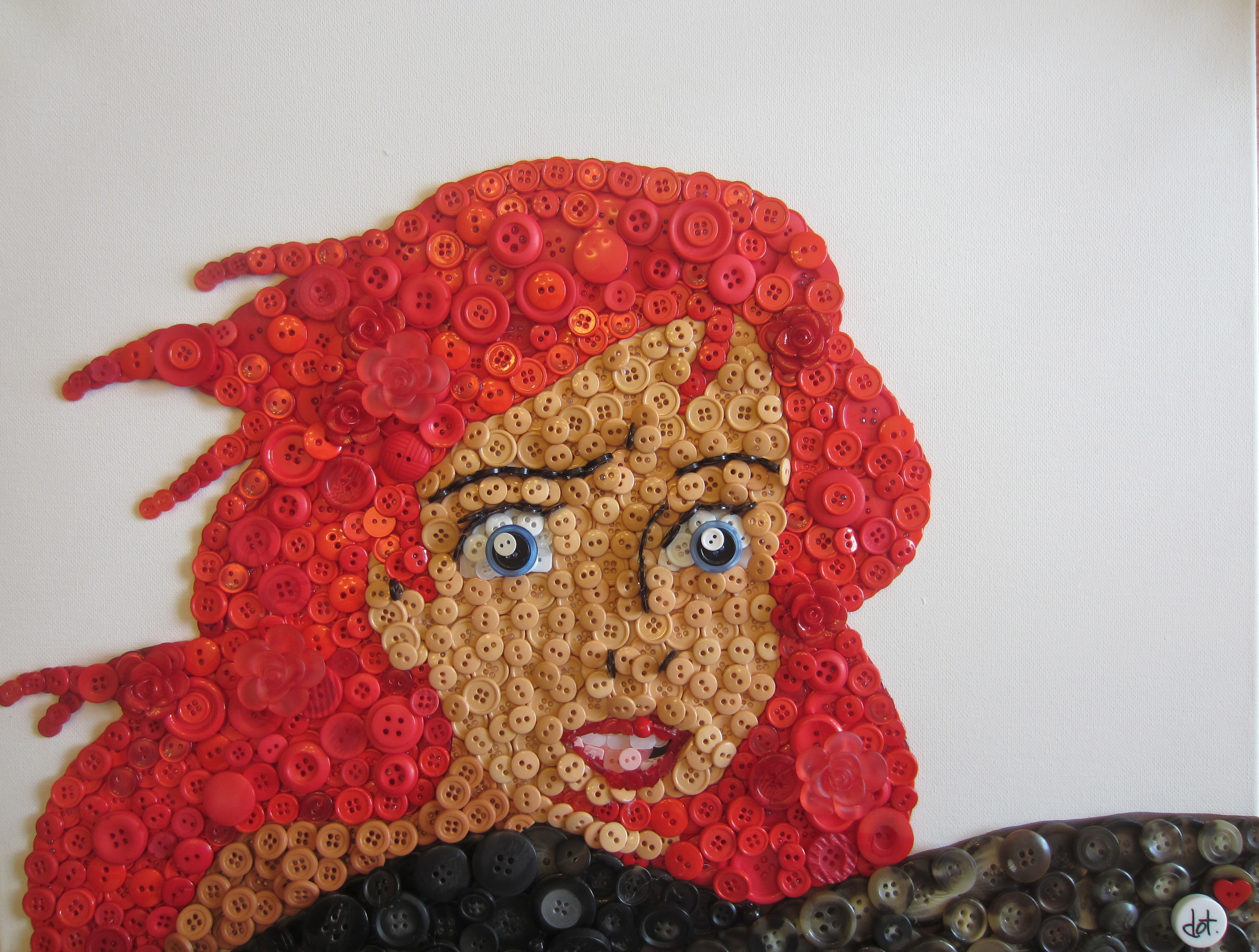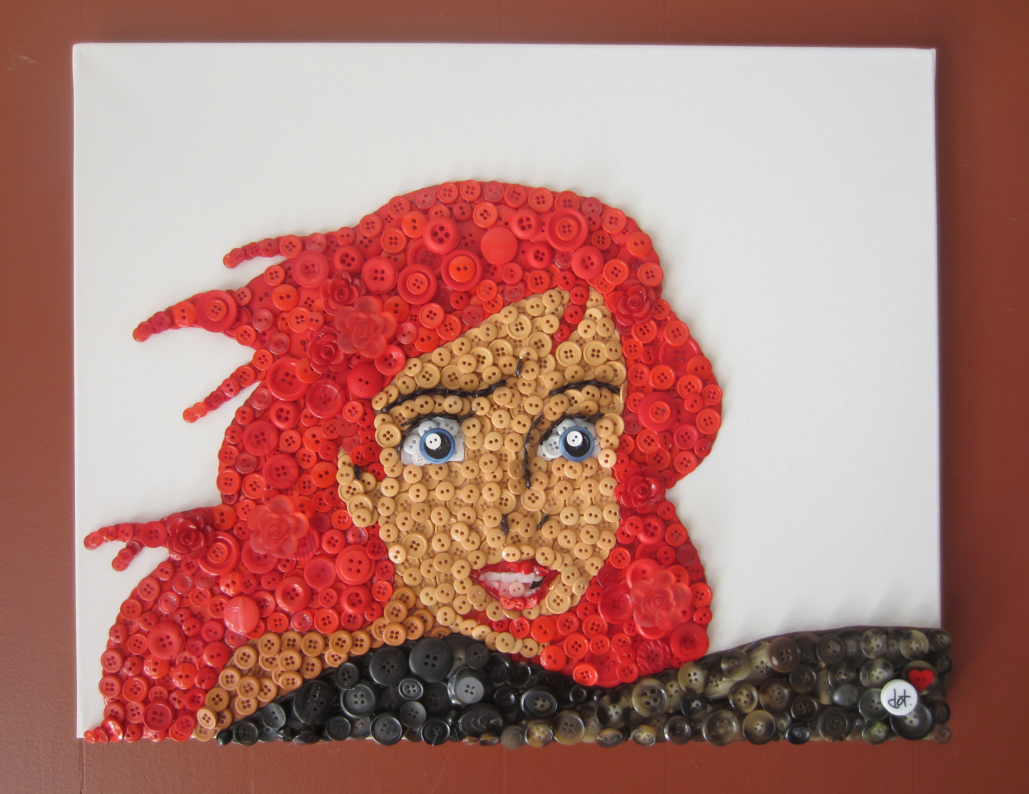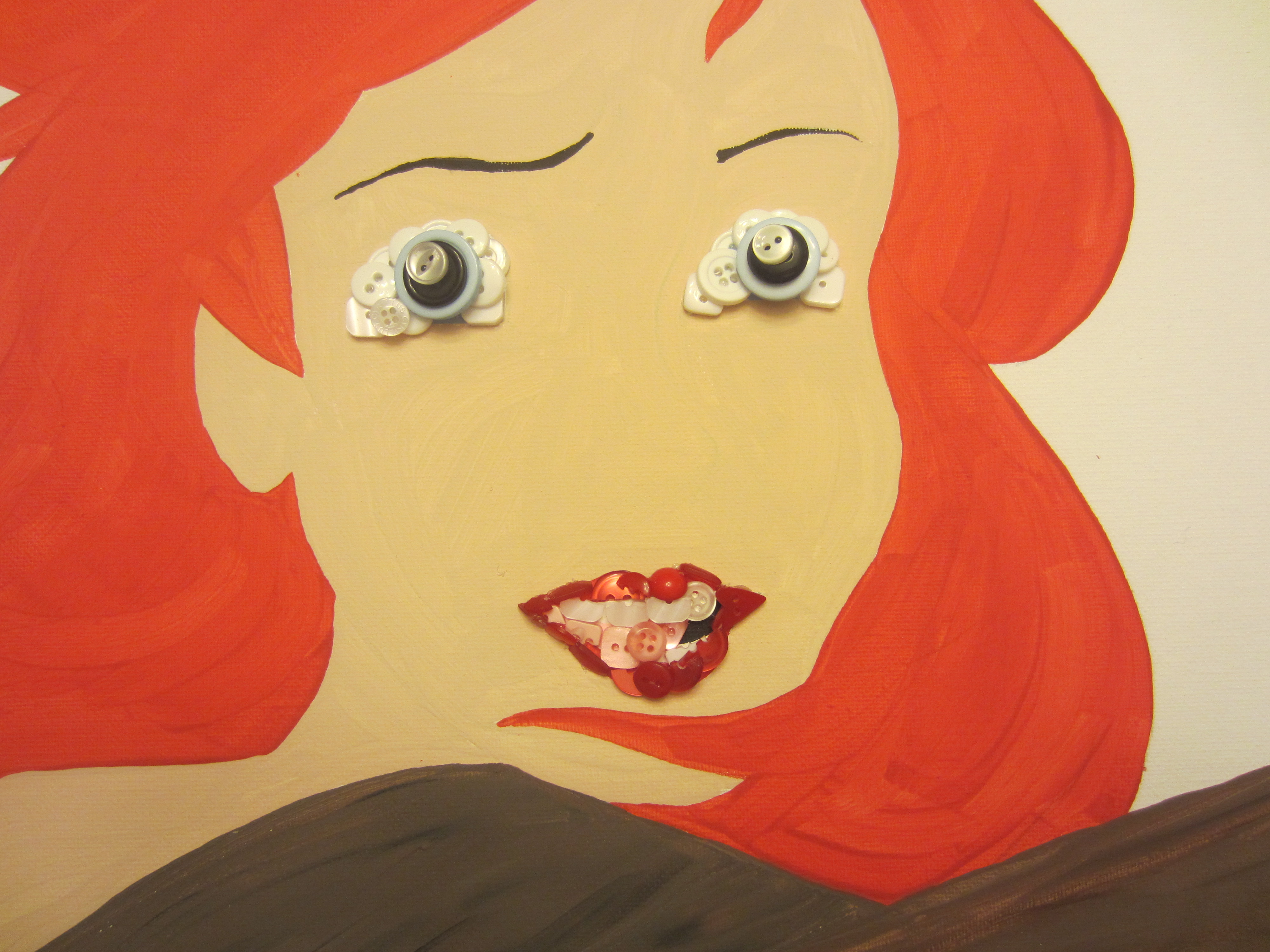 IMG_1077 Some random fish-chick… who was composed entirely out of BUTTONS! CRAZY HUH?!?!!?!  I was so excited when Christie from buttonlovers.com contacted me and asked if I’d be able to create something like this. Naturally, I said ‘heck yes’ even though I didn’t know if I could. Turns out I could.  And if you follow these simple 63 steps, you can to!! Hahaa there aren’t quite 63 steps, but this is definitely a time-consuming project, and if you haven’t made a button picture yet, I’d recommend that you check out one of my more simple projects first, such as this cupcake tutorial.
