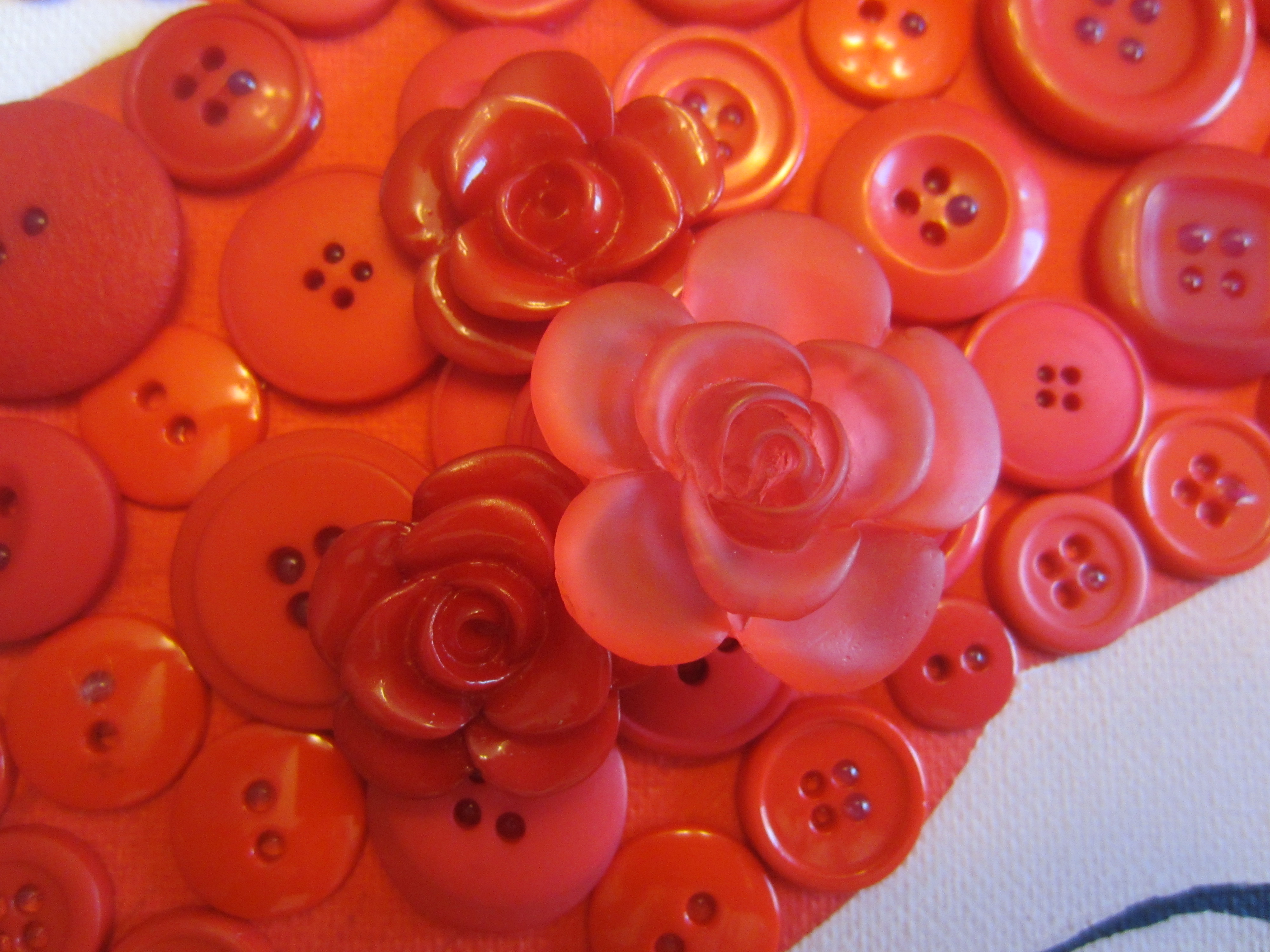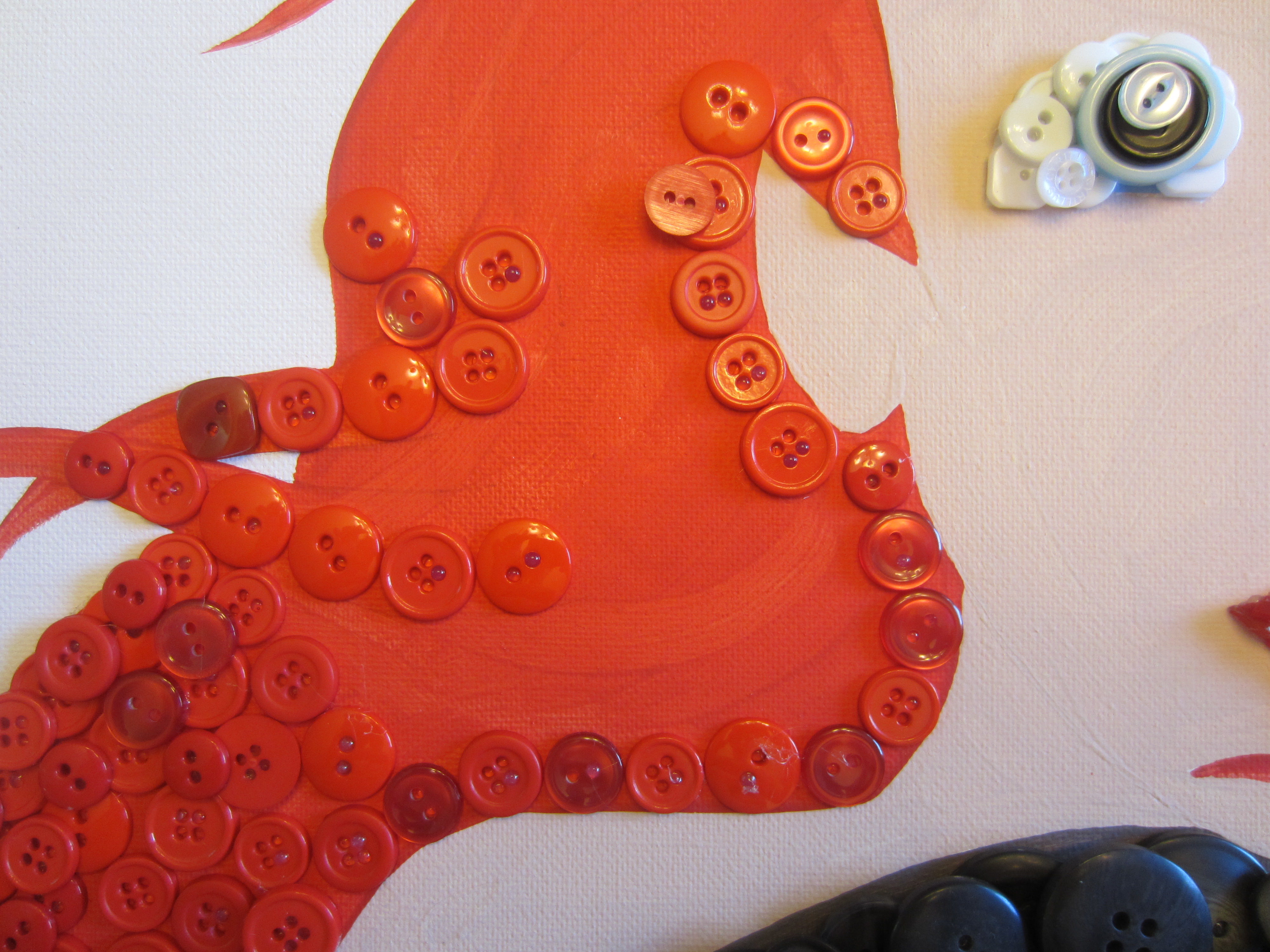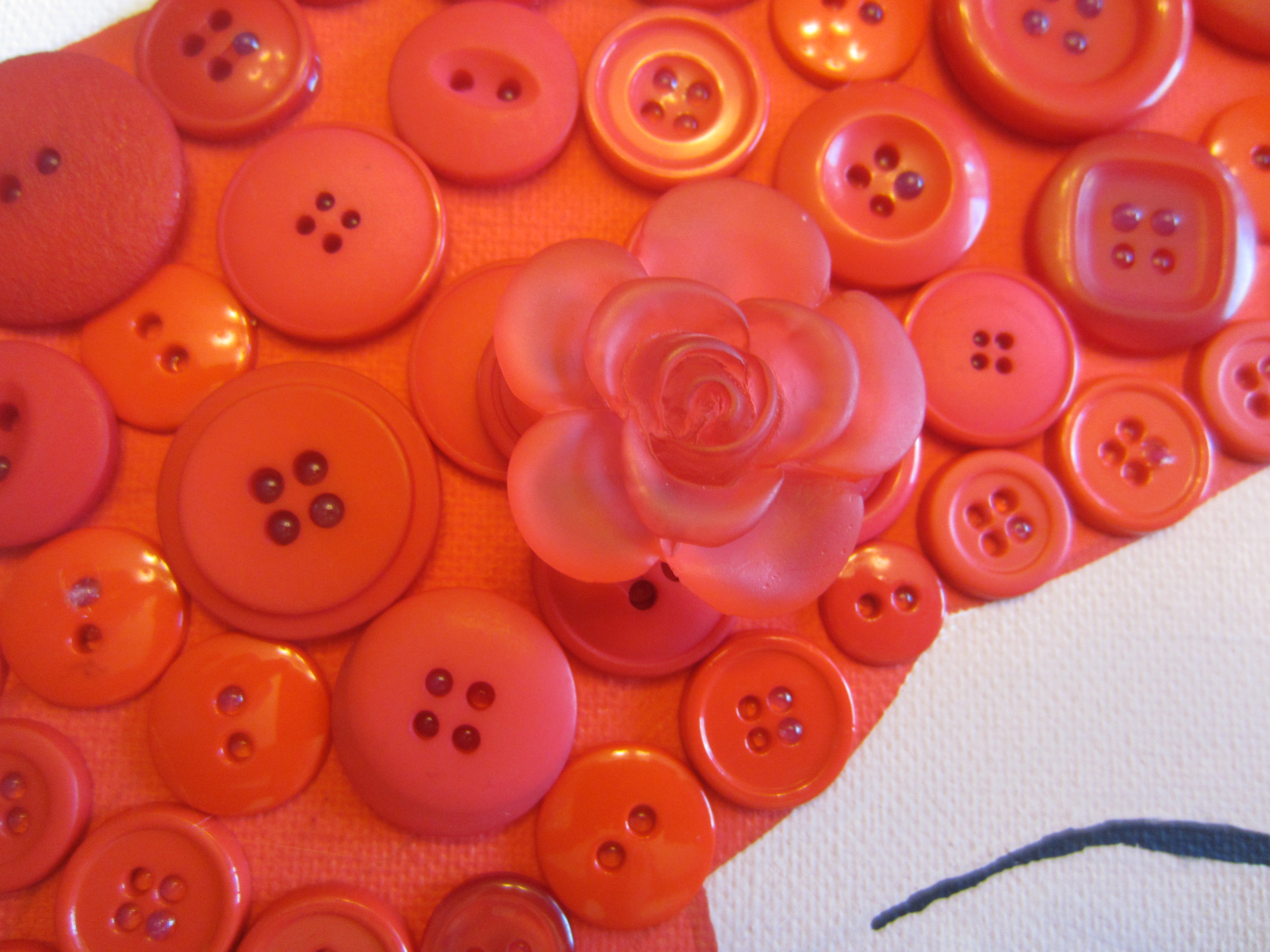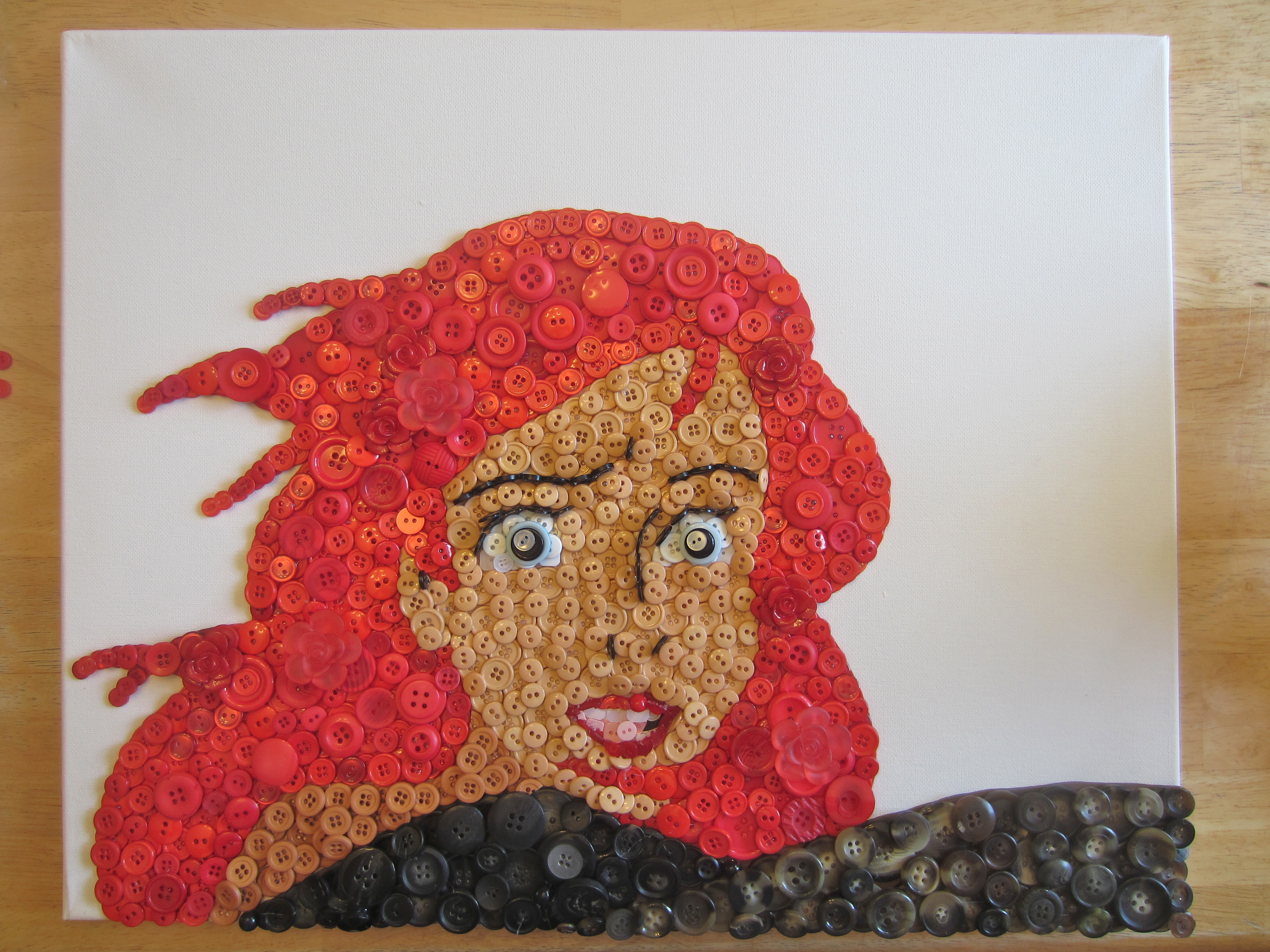 IMG_0841Since I was using a 16″x20″ canvas, some of the details of the mouth were pretty small, and even with my awesome button selection, I still needed to bust some buttons (hehe) to get it just right. I’ve been learning new tricks with each button picture I create!