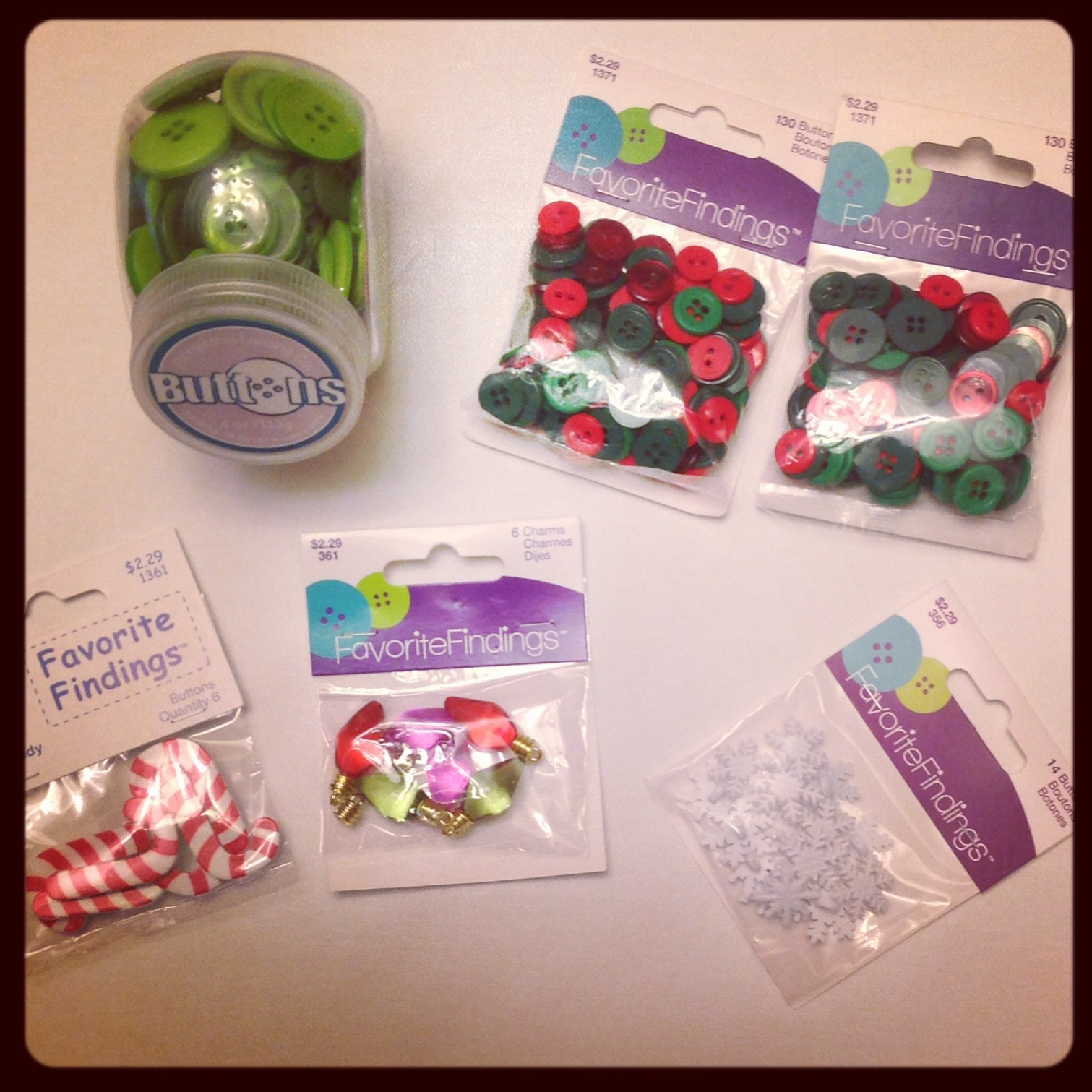 So this was just a small selection of some of the incredible buttons I received to do this project! I originally thought I’d use the cuuute candy cane and Christmas light buttons to adorn the tree, but I kept it simple in the end, though I have a lot of plans for those embellishments too! You can buy these buttons at Jo-Ann Fabrics, or at Joann.com! These ‘Favorite Findings‘ buttons are seriously my favorites- I’ve said it a hundred times, but they are perfect for crafting for so many reasons, and they are really reasonably priced! I just realized as I am writing this, Joann’s buttons are 50% off!!! Seriously, get on this sale, if not for Christmas, but for spring time and more projects!
