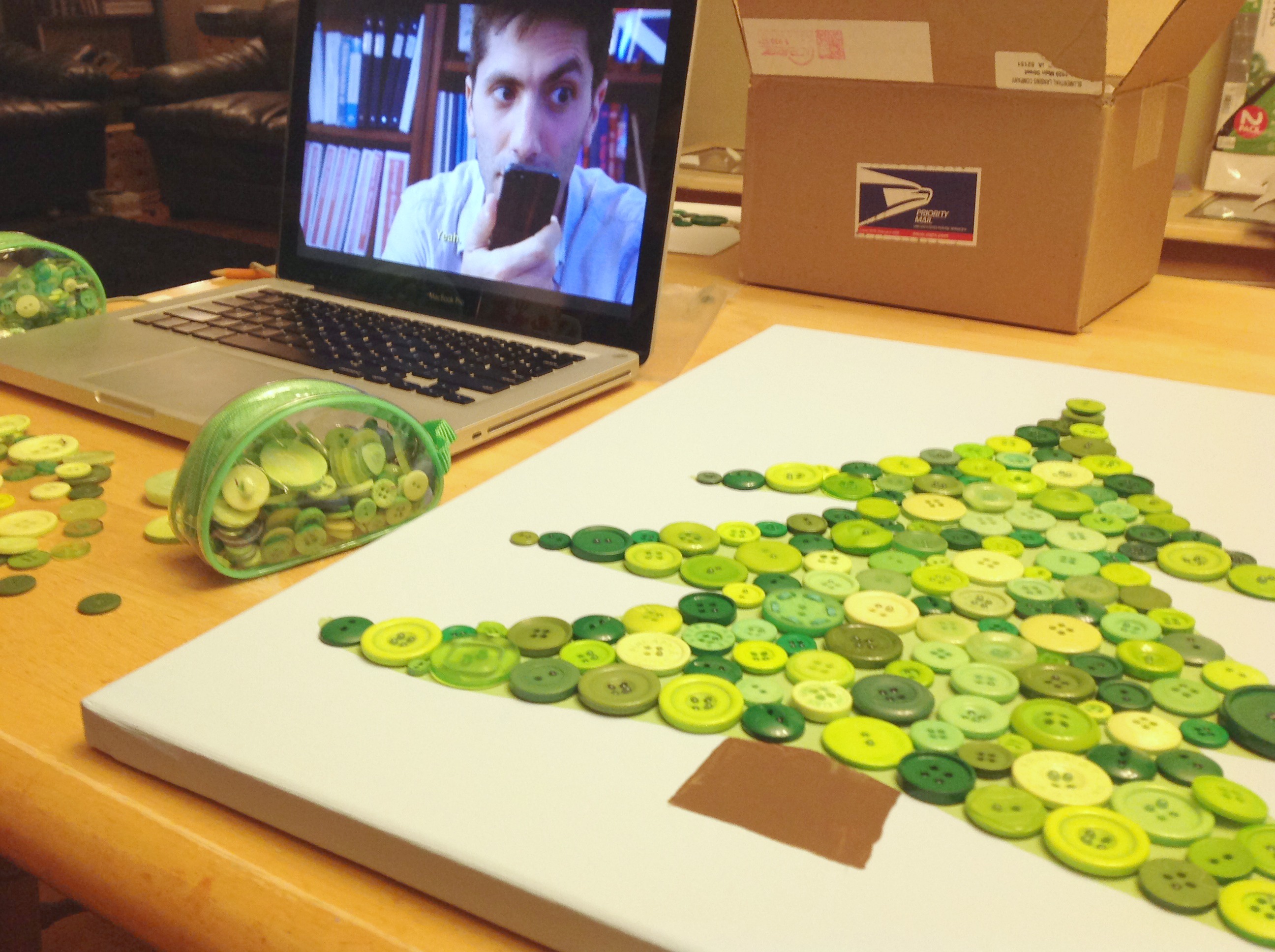 Once you’re daughter is in bed, turn on some trashy reality TV, and continue to fill in the tree with buttons.