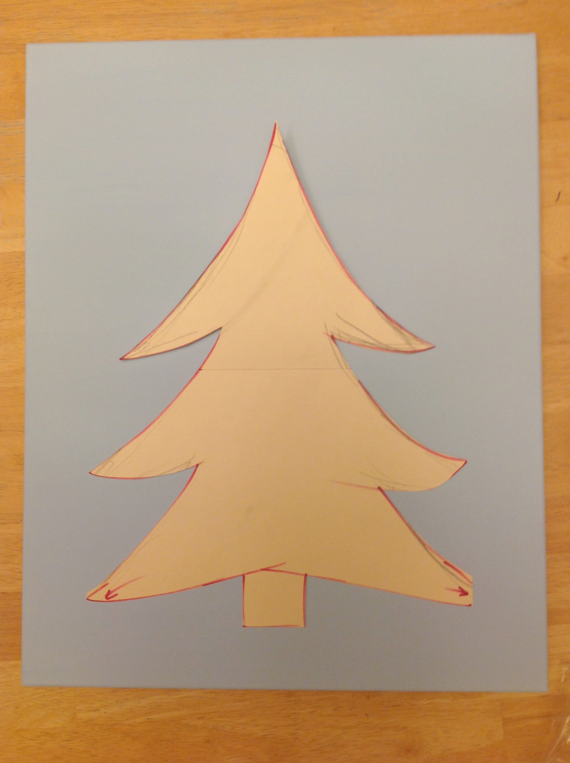Next I created a simple Christmas tree template and traced it onto the canvas.