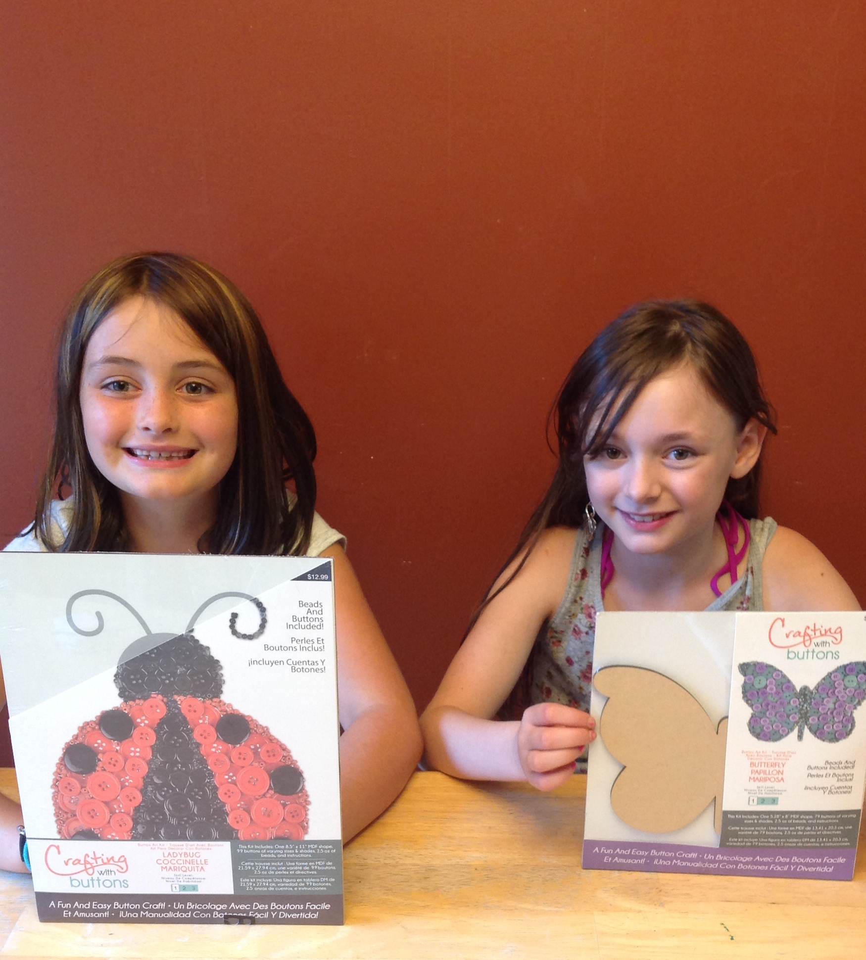 My 10 year old daughter, and my 8 year old niece were in a crafty kind of mood, so I suggested… button art. Obviously. They were pretty darn excited! This was going to be a bit different than our usual button art, though, because I snagged these sweet kits from my fave button people of all time: ButtonLovers.com!