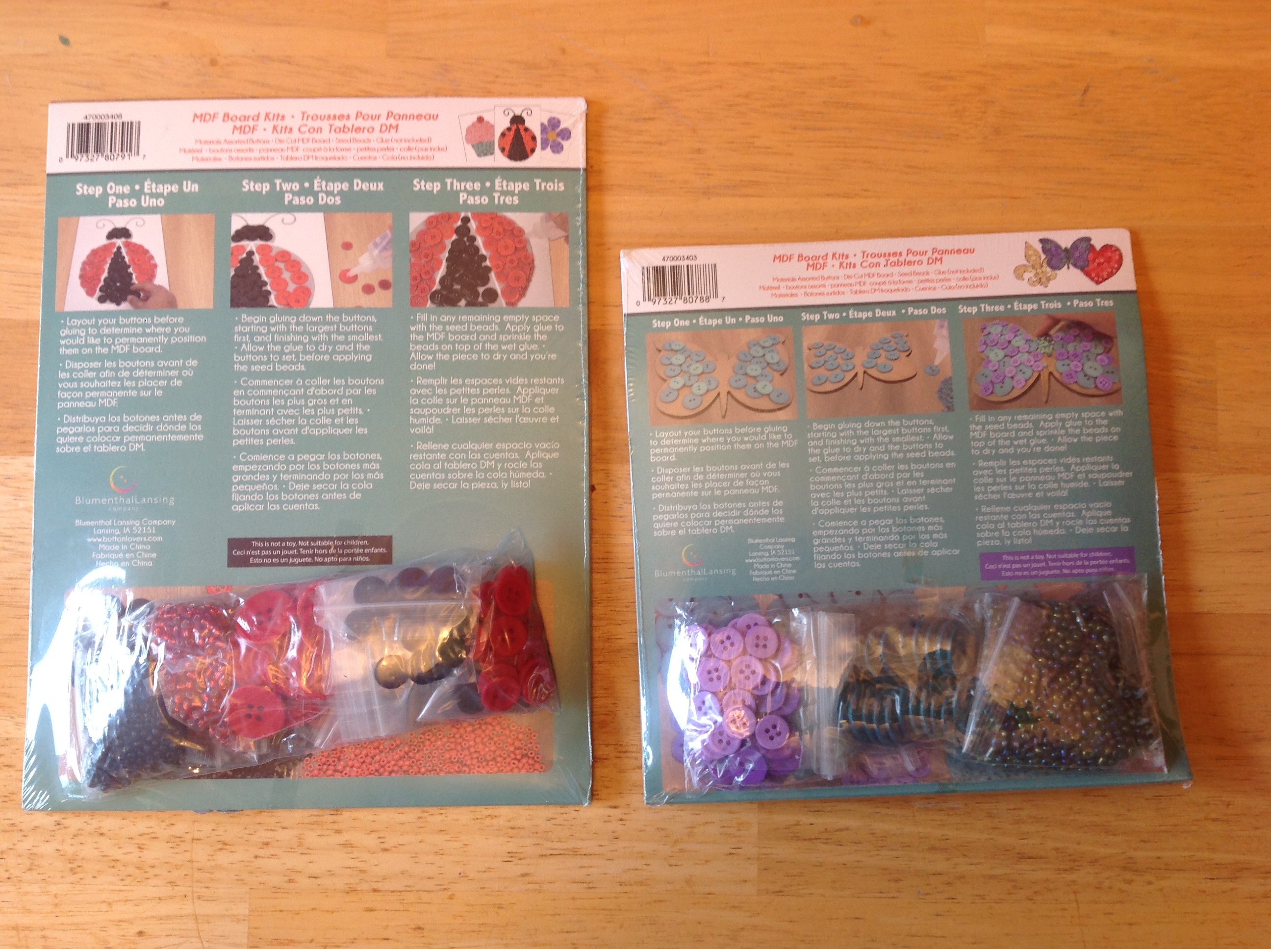 Okay, so each kit comes with everything you need, except for some plain old crafty glue. These kits use buttons AND beads which is kind of fun, and if you want to make sure the background isn’t peeking through, it’s a lot easier than just layering buttons like I do, though it creates a different kind of look.
