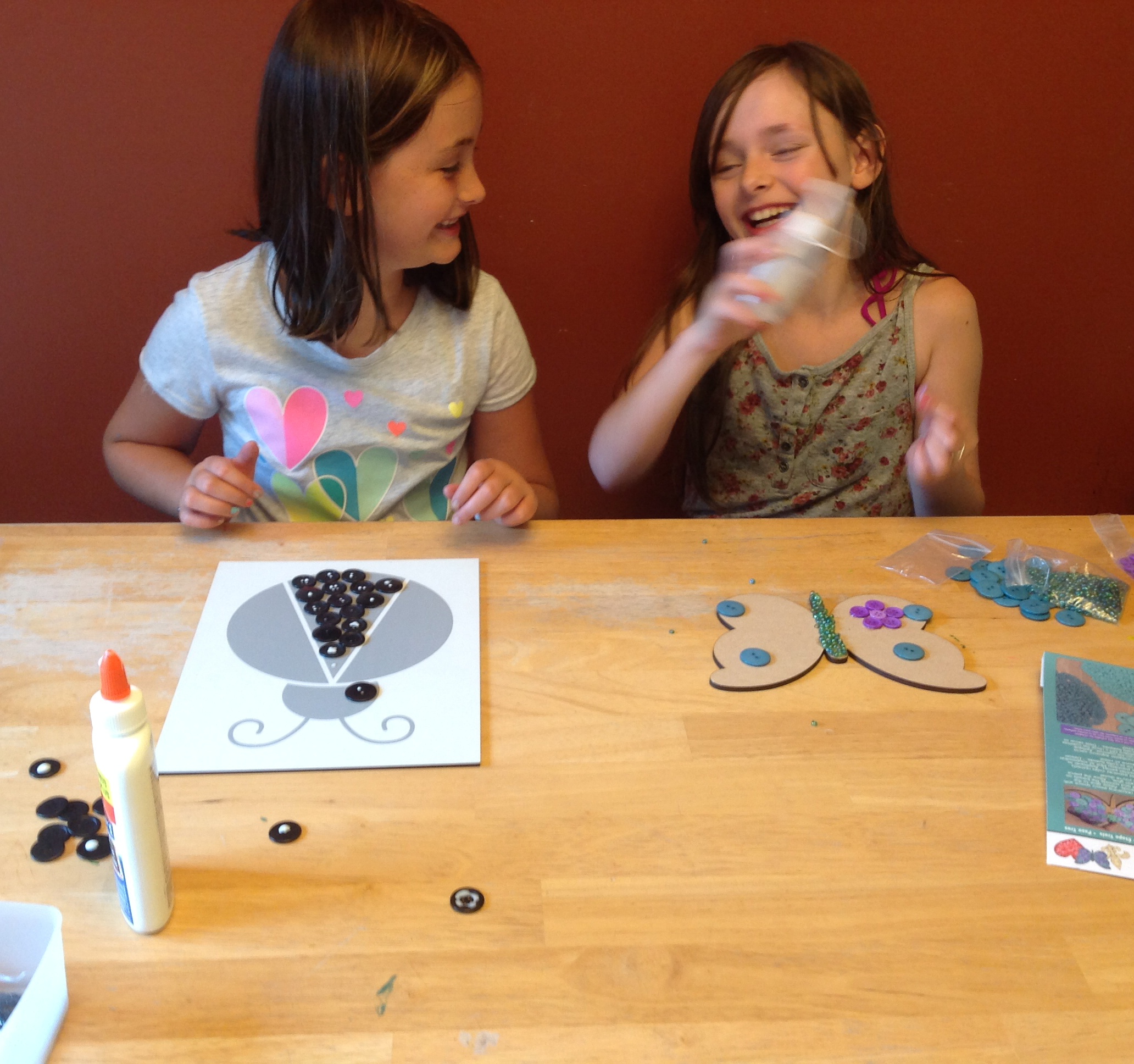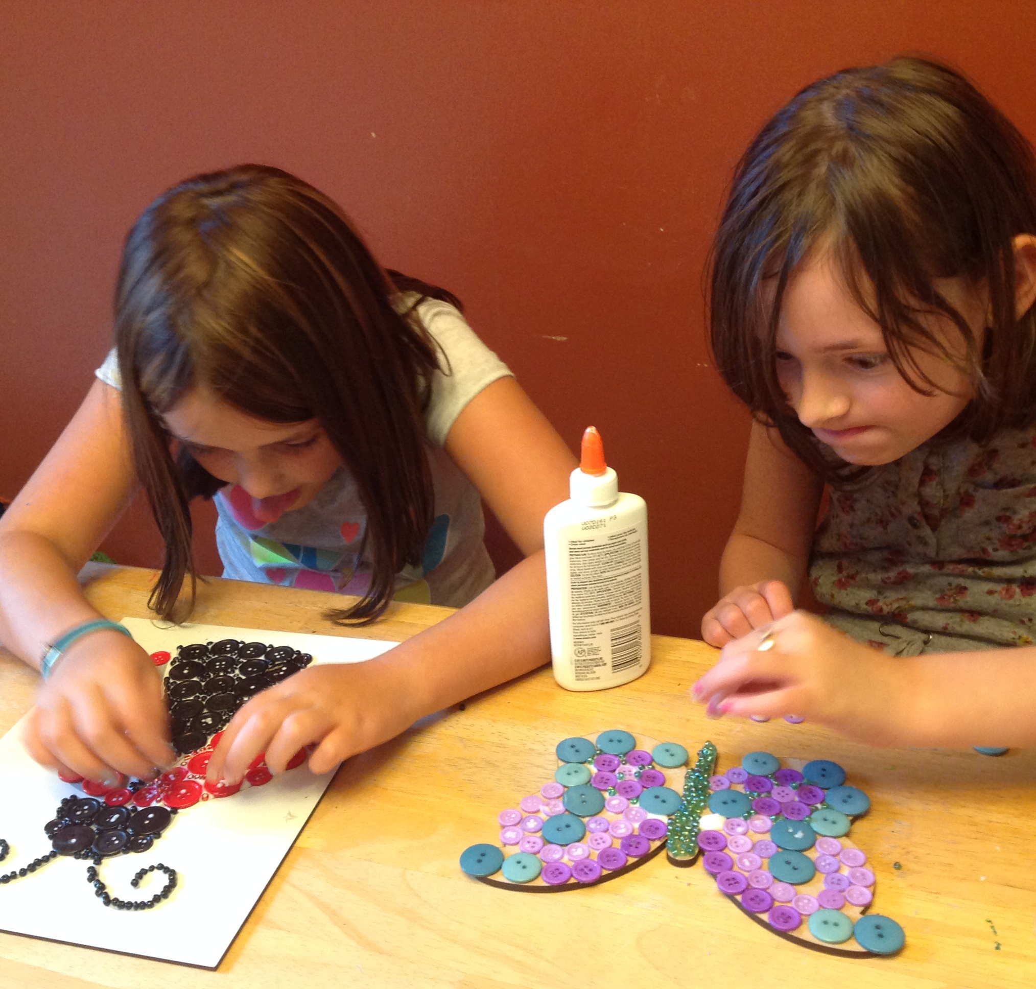 So much fun. Look at them go! Gluing their first layer of buttons. I should mention that I didn’t help them with these- they just went with it. Seriously- I was just sitting with them, taking photos and snapchatting such masterpieces as this: