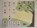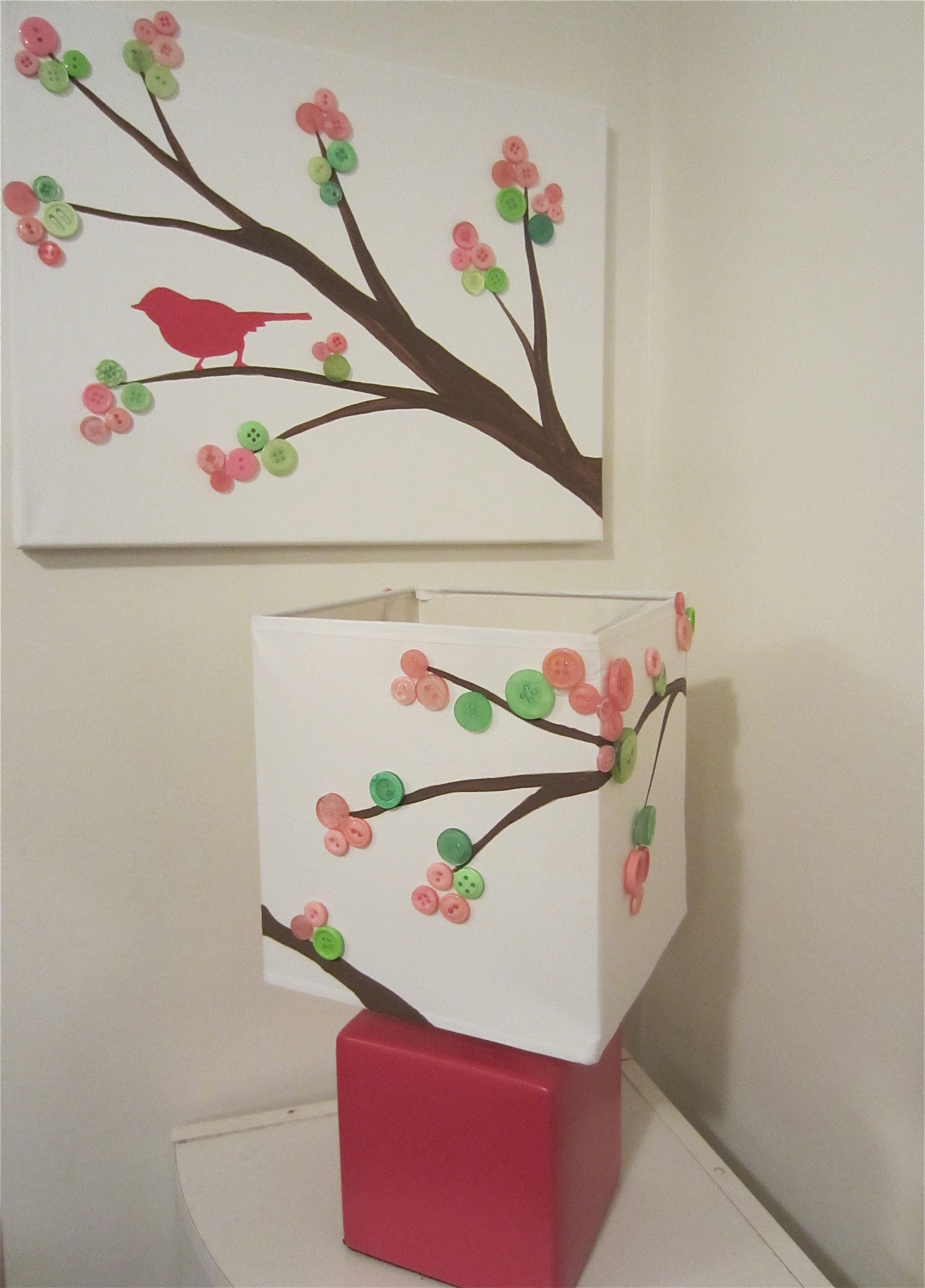 Thanks! Our couches in the room beside that wall are dark wine coloured, but dark buttons seemed off balance – made it look like an apple tree, so the light greyish pink seemed to be the best way to match. The tree I TOTALLY copied from yours, though 😉