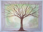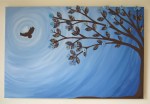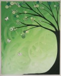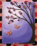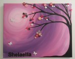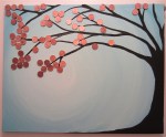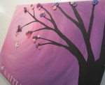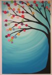 i painted a simple beach scene (links to youtube tutorials on that post) and used sea glass as leaves- but i was thinking shells would work too 🙂 even just a beachy colored blended background with a simple silhouette of a branch or tree with seashell leaves would be perfecto! let me know what you decide on! have fun 😀