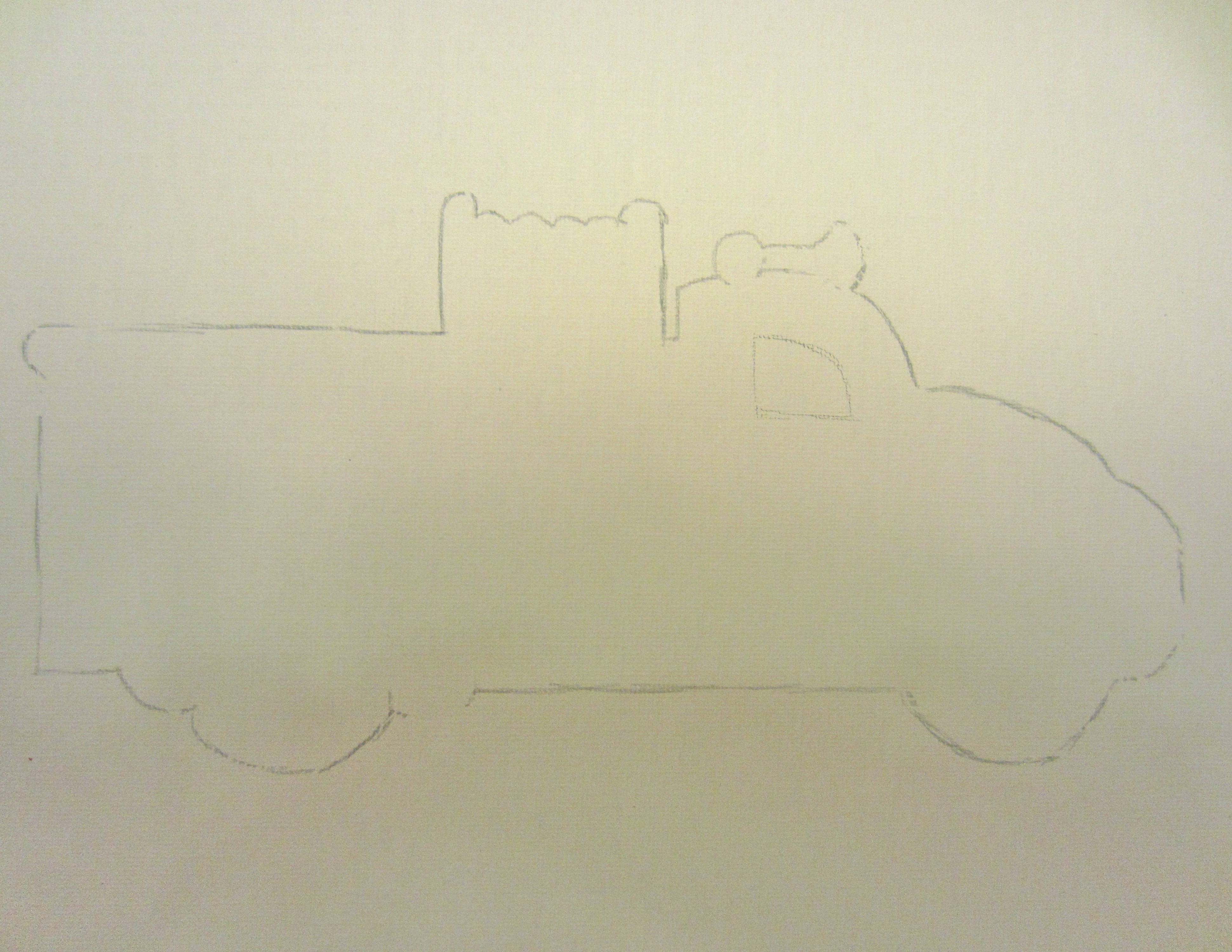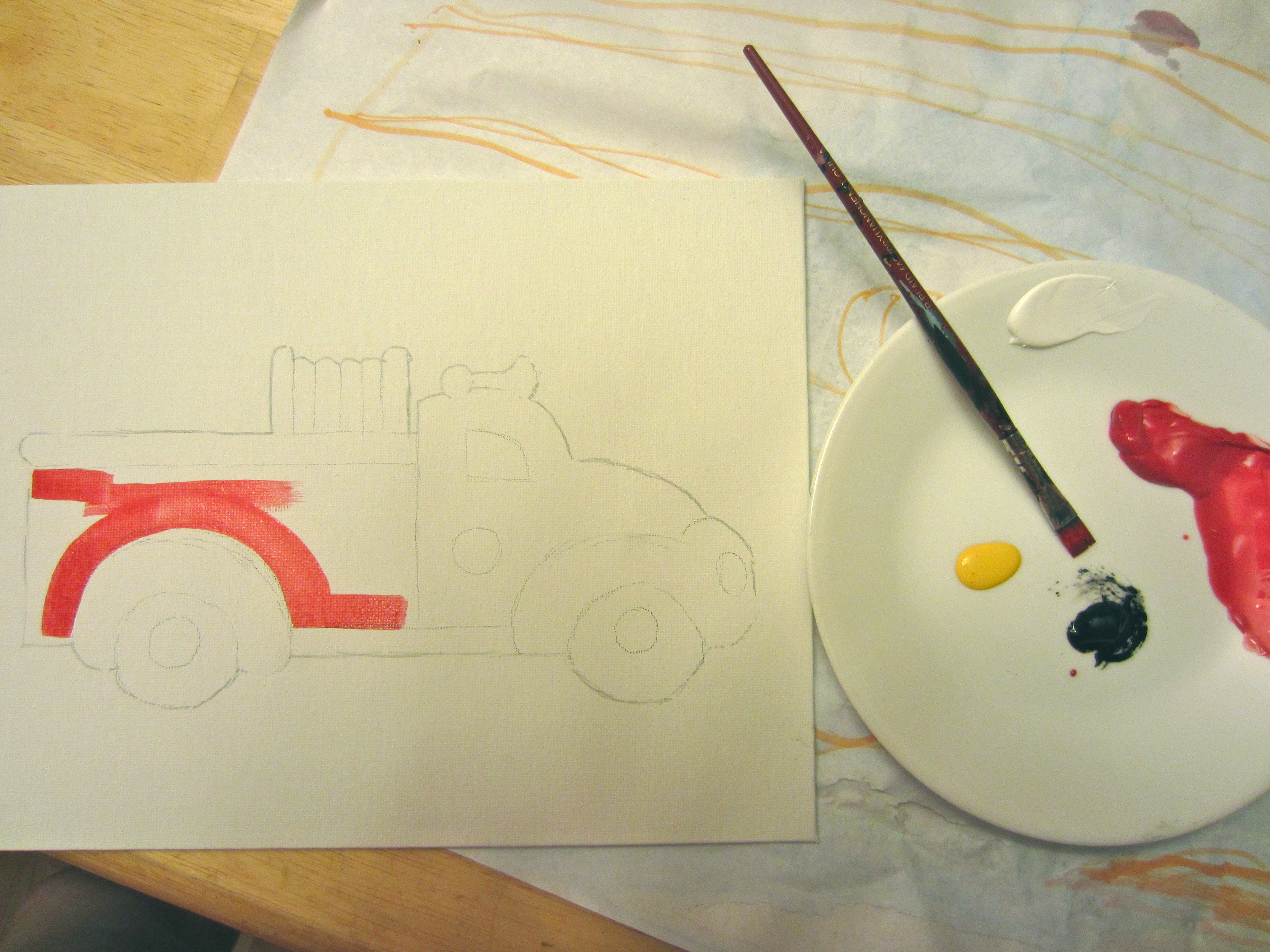 After you’ve copied your image onto an 8×10 canvas board, thin out some paint and begin to add color!
