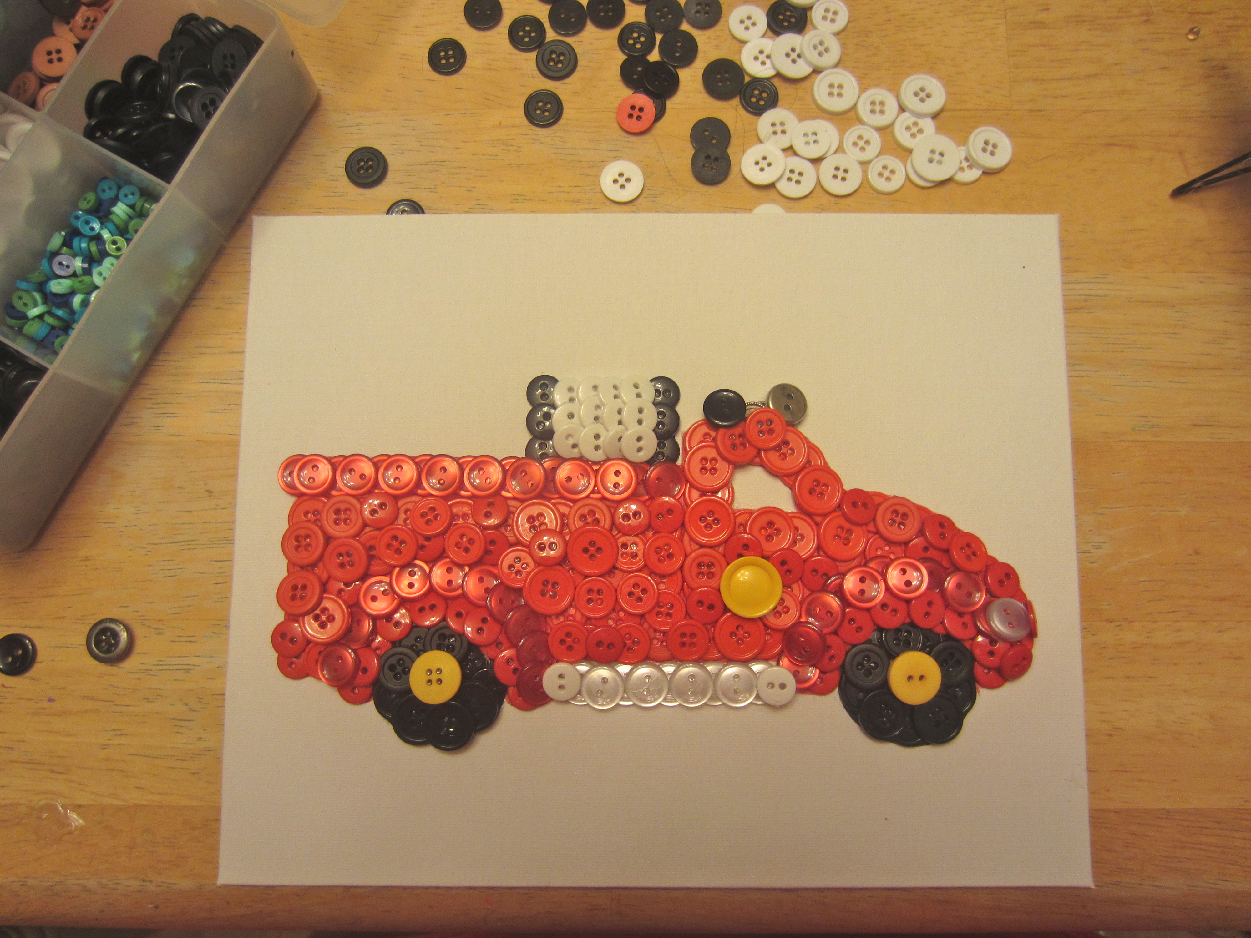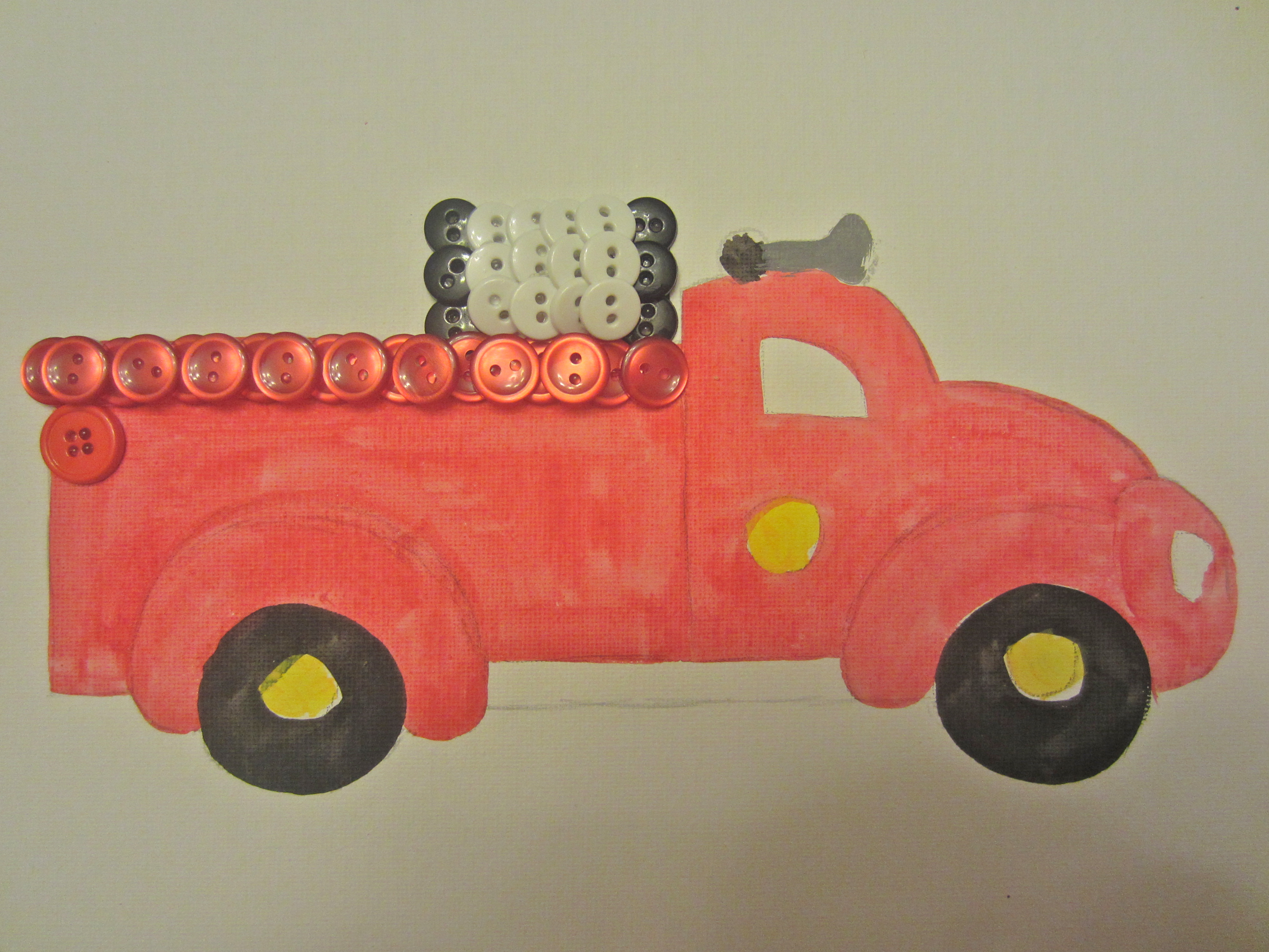 Okay, enough about me, let’s talk about you. You want to make this button fire truck for your son who loves fire trucks, or your uncle who was a fire chief? Perfect. Let’s get started!