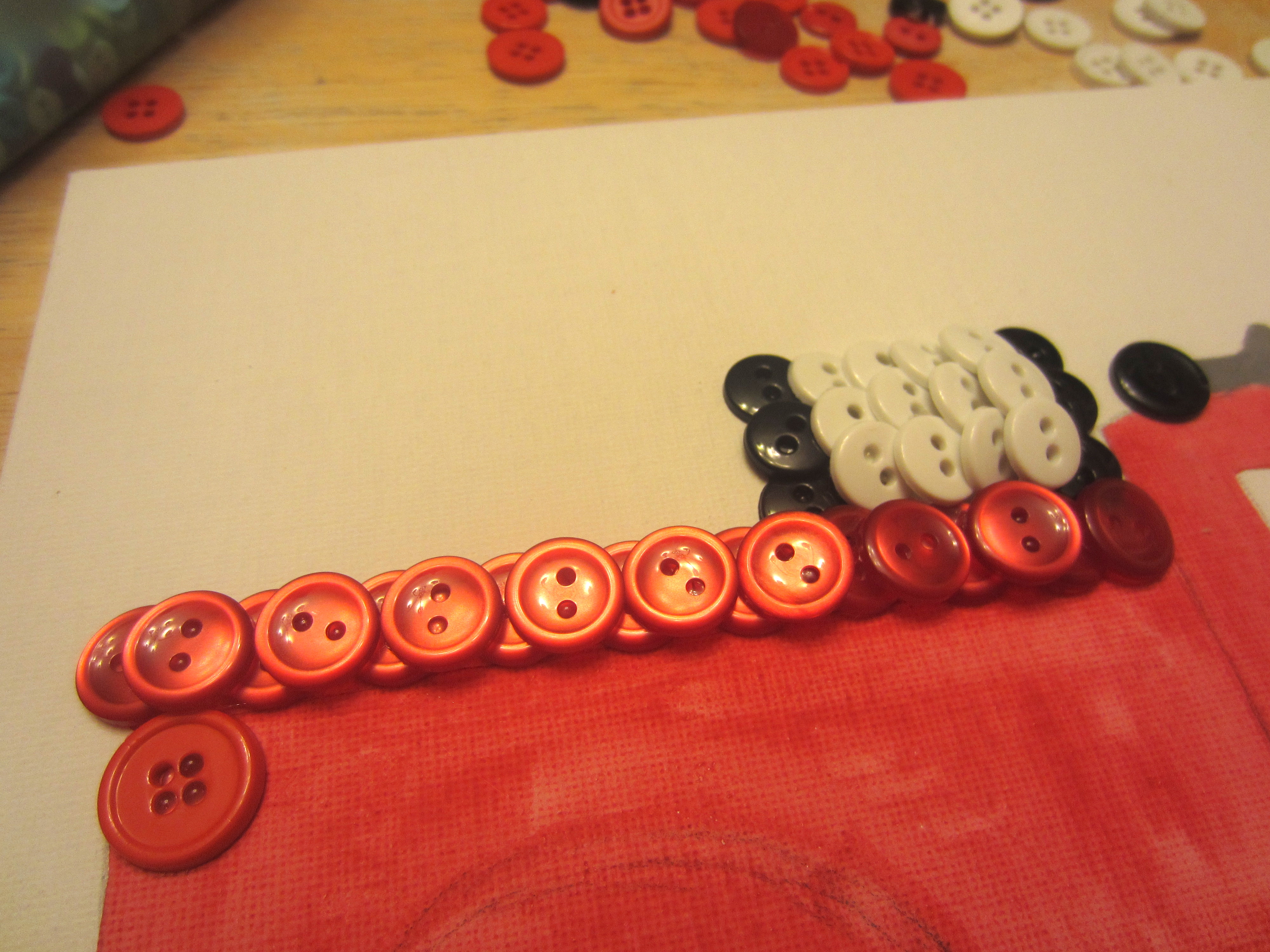My #1 tip for filling in a picture with buttons is to start around the edges, and work your way in. Overlap where you need to, and you will get a nice, crisp edge.