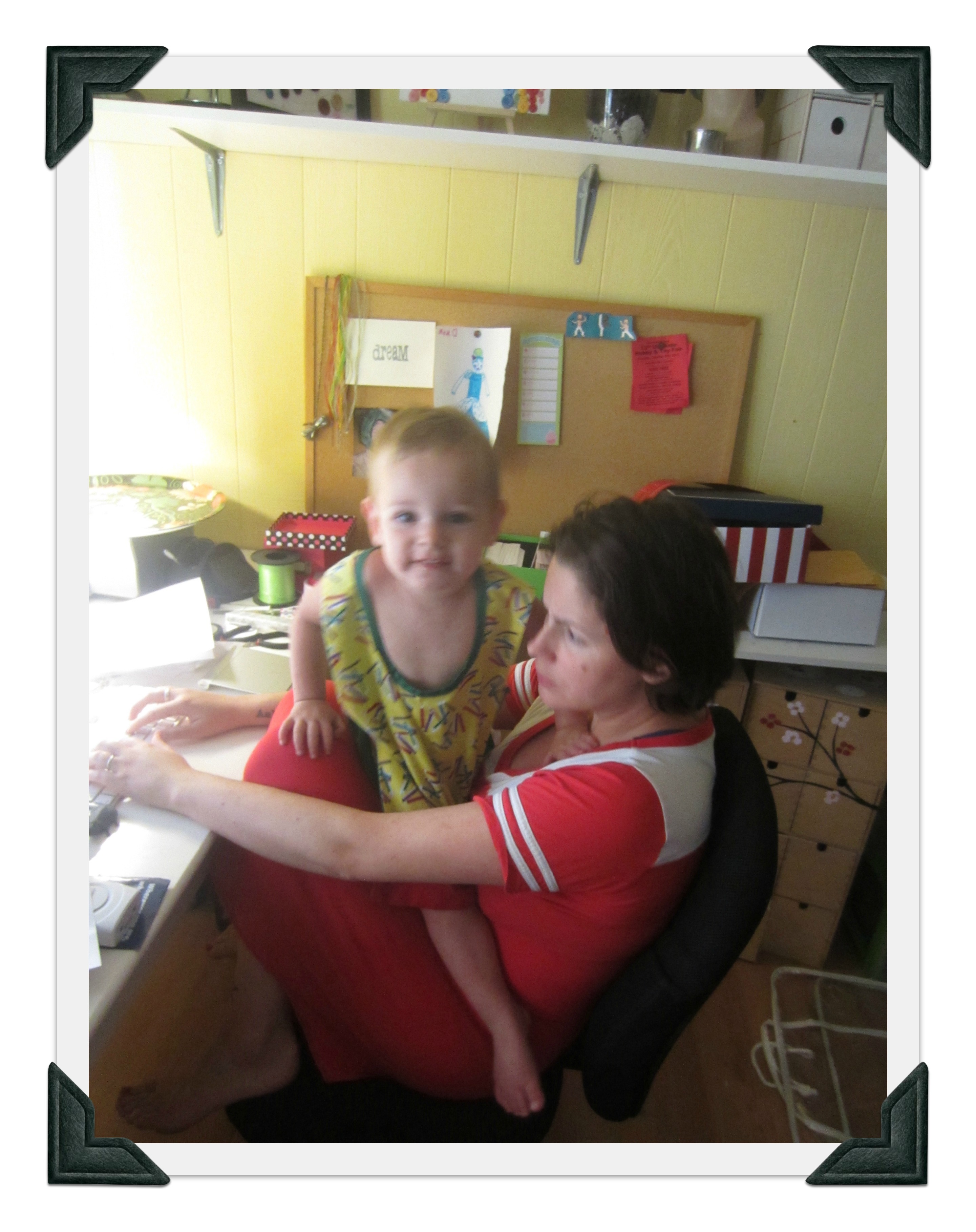 Well, I should stop ignoring children… I’m good at that. I’ll share a pic my sis just took now, so you can have a behind-the-scenes look at how I work…