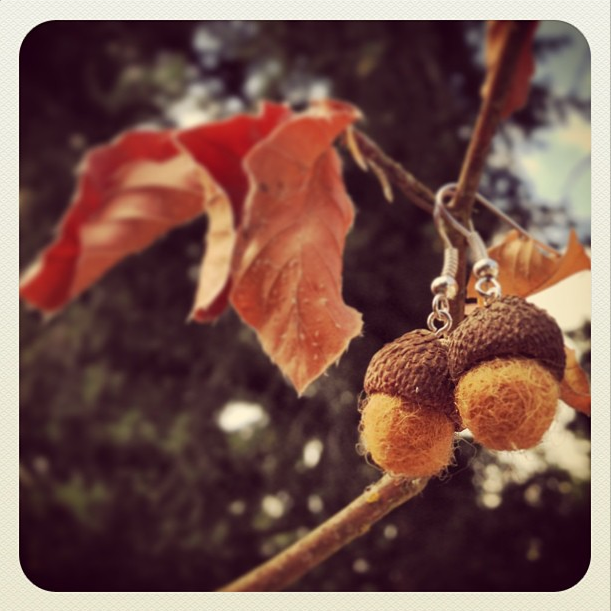 I created these tiny acorn earrings out of felted wool balls and real acorn caps! Cuteness overload. I can’t wait to list them in my Etsy shop in September 🙂